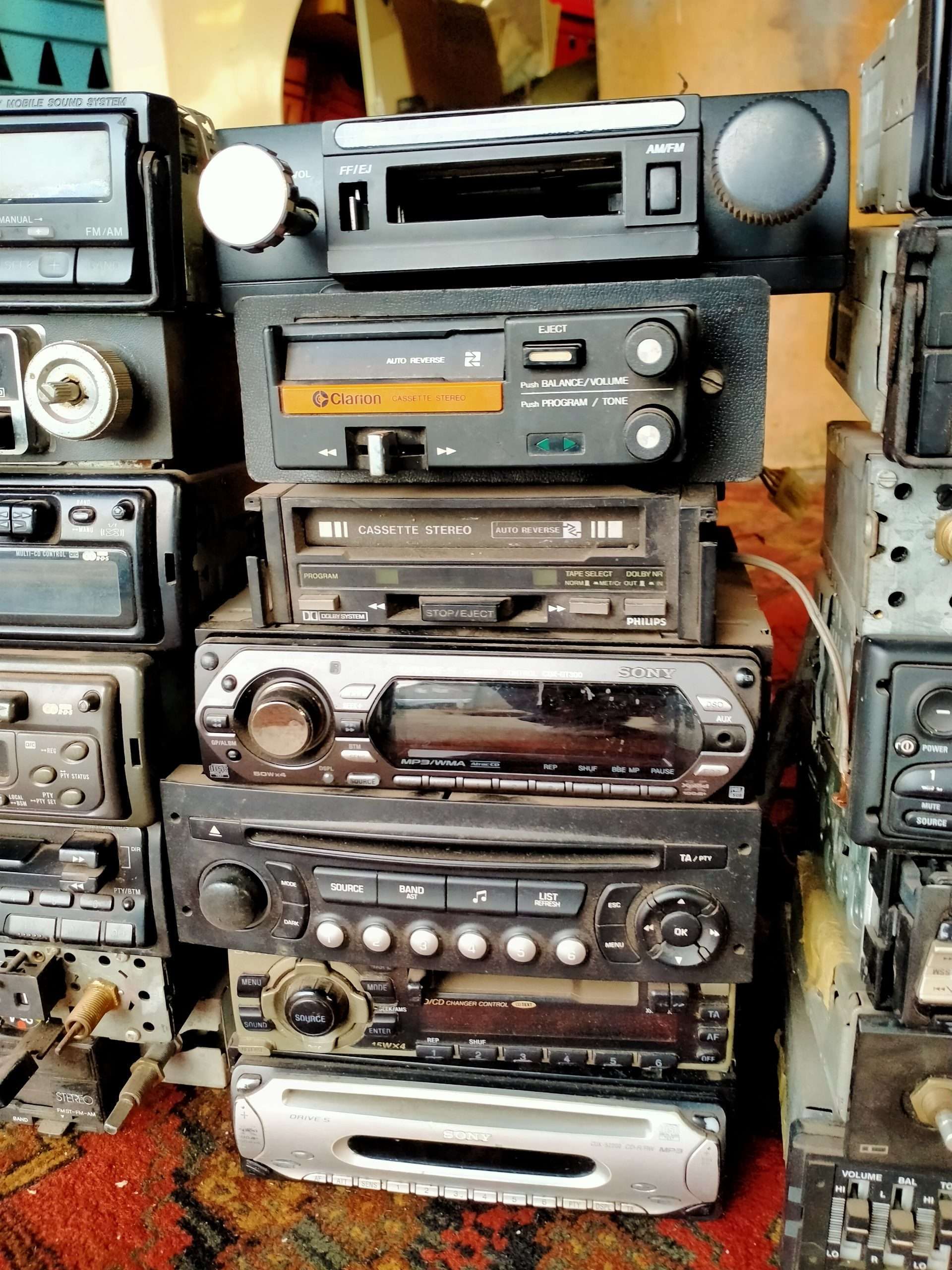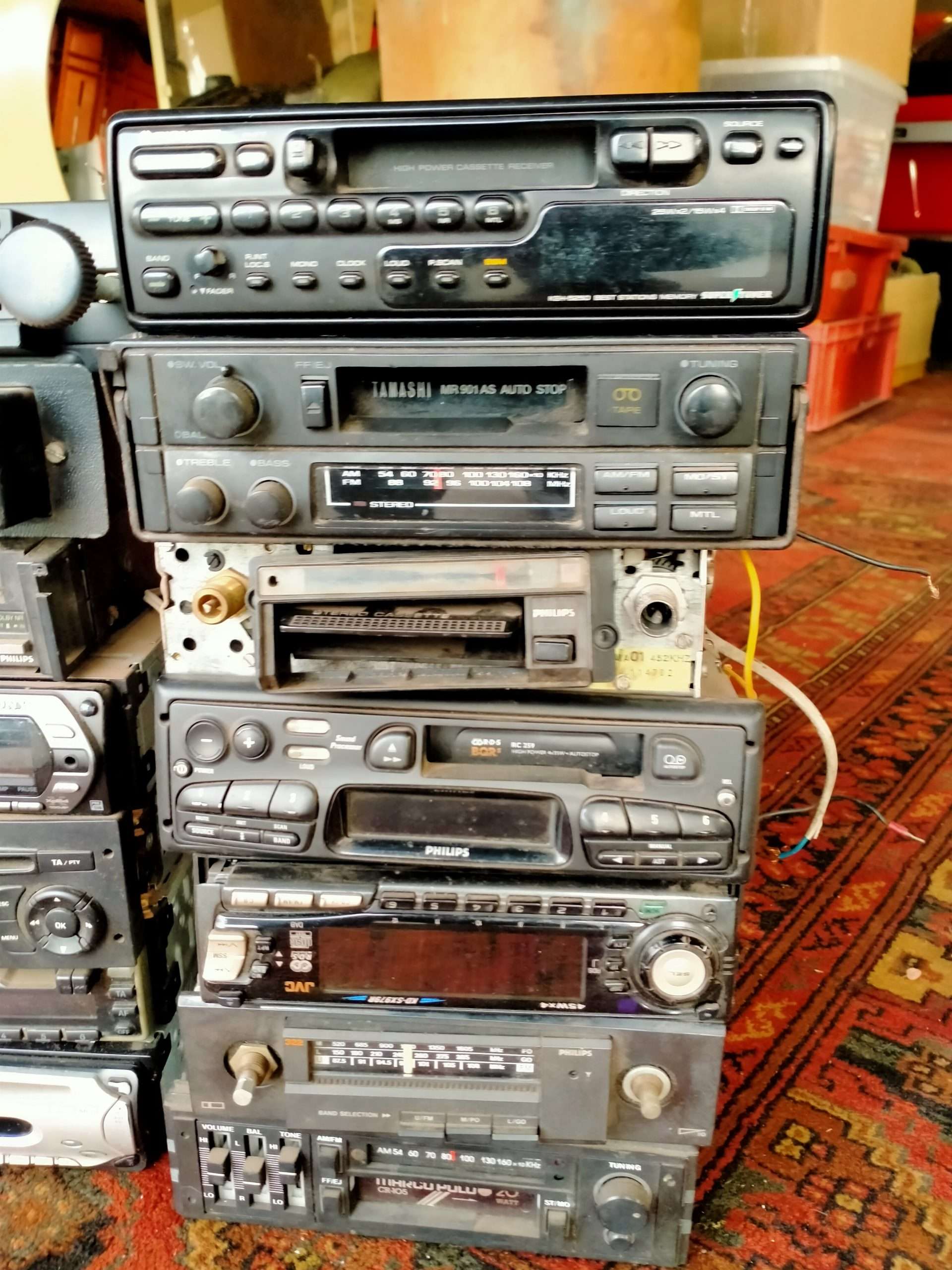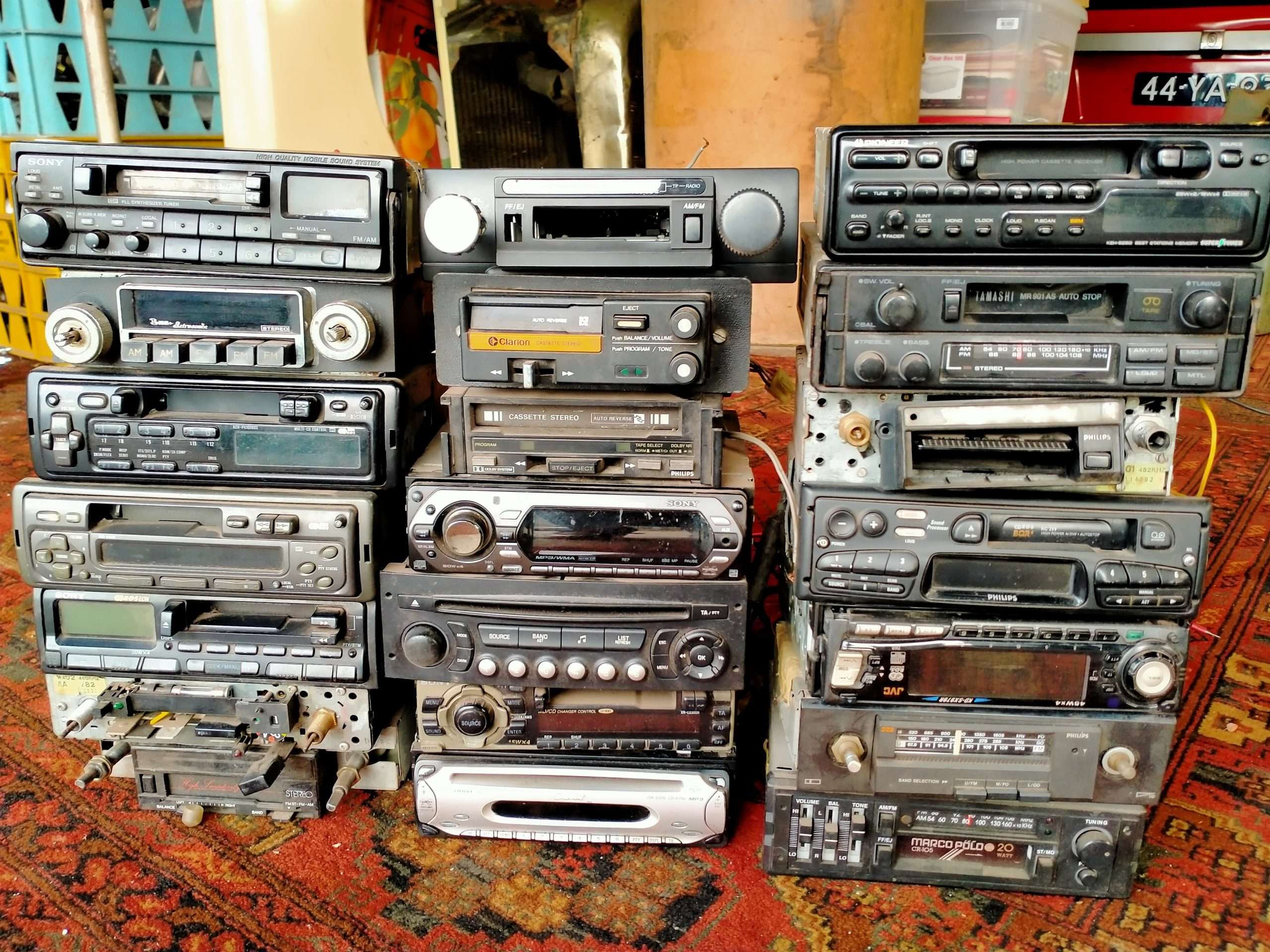 Partij oude autoradio’s-cassette