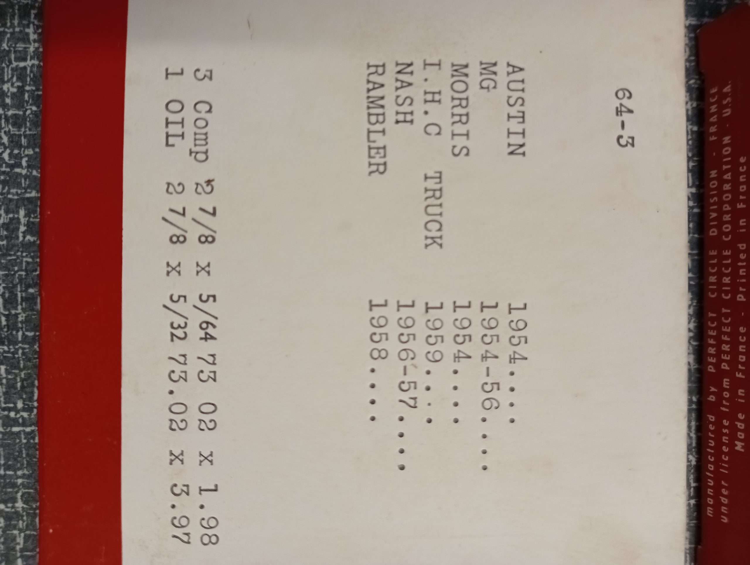 Set zuigerveren Austin – MG – Morris IHV Truck – Nash – Ramblers