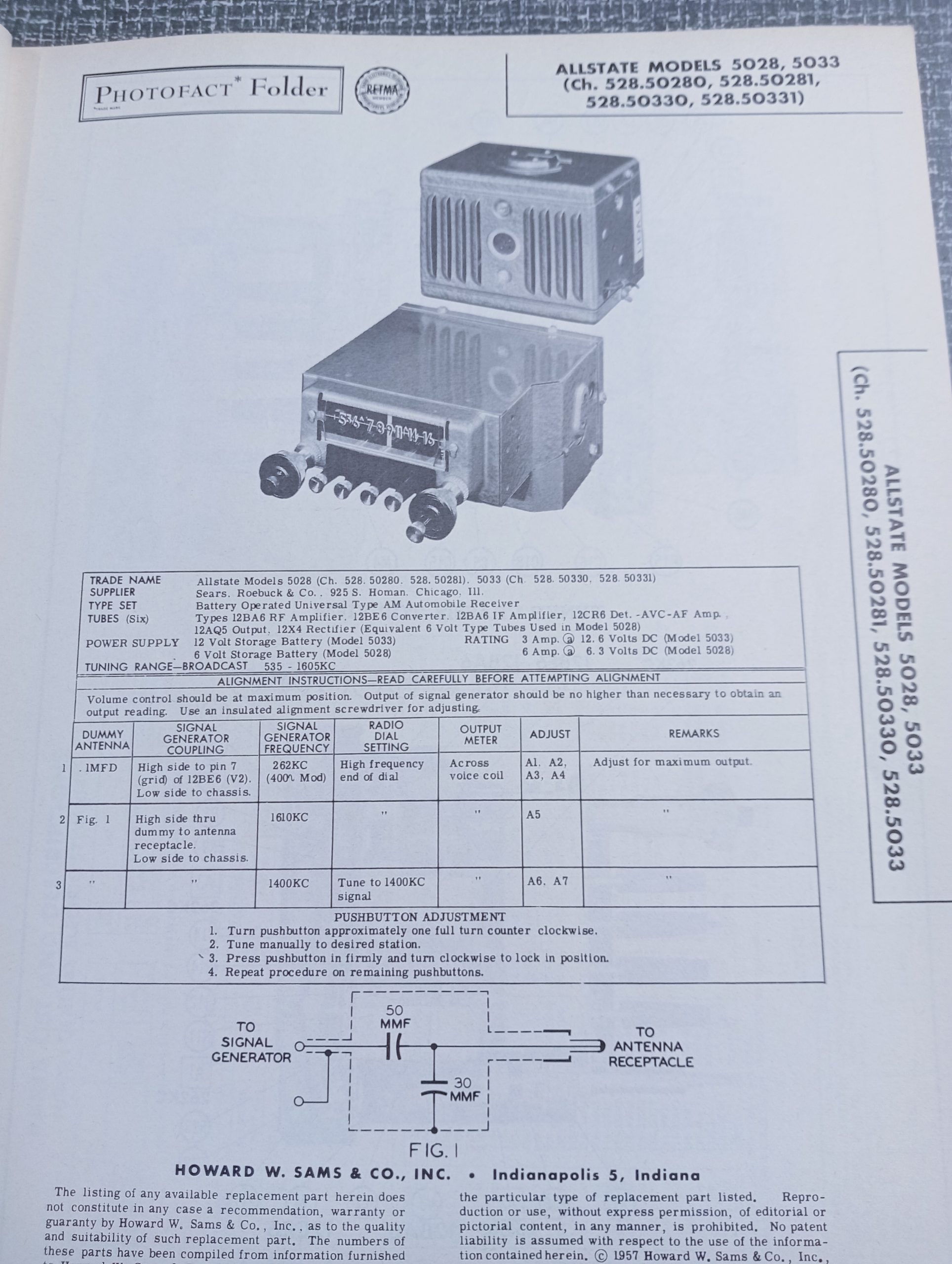 Autoradio informatie, schema’s, onderdelen, parts, partially sts, photos voor USA autoradio’s 1956-1957