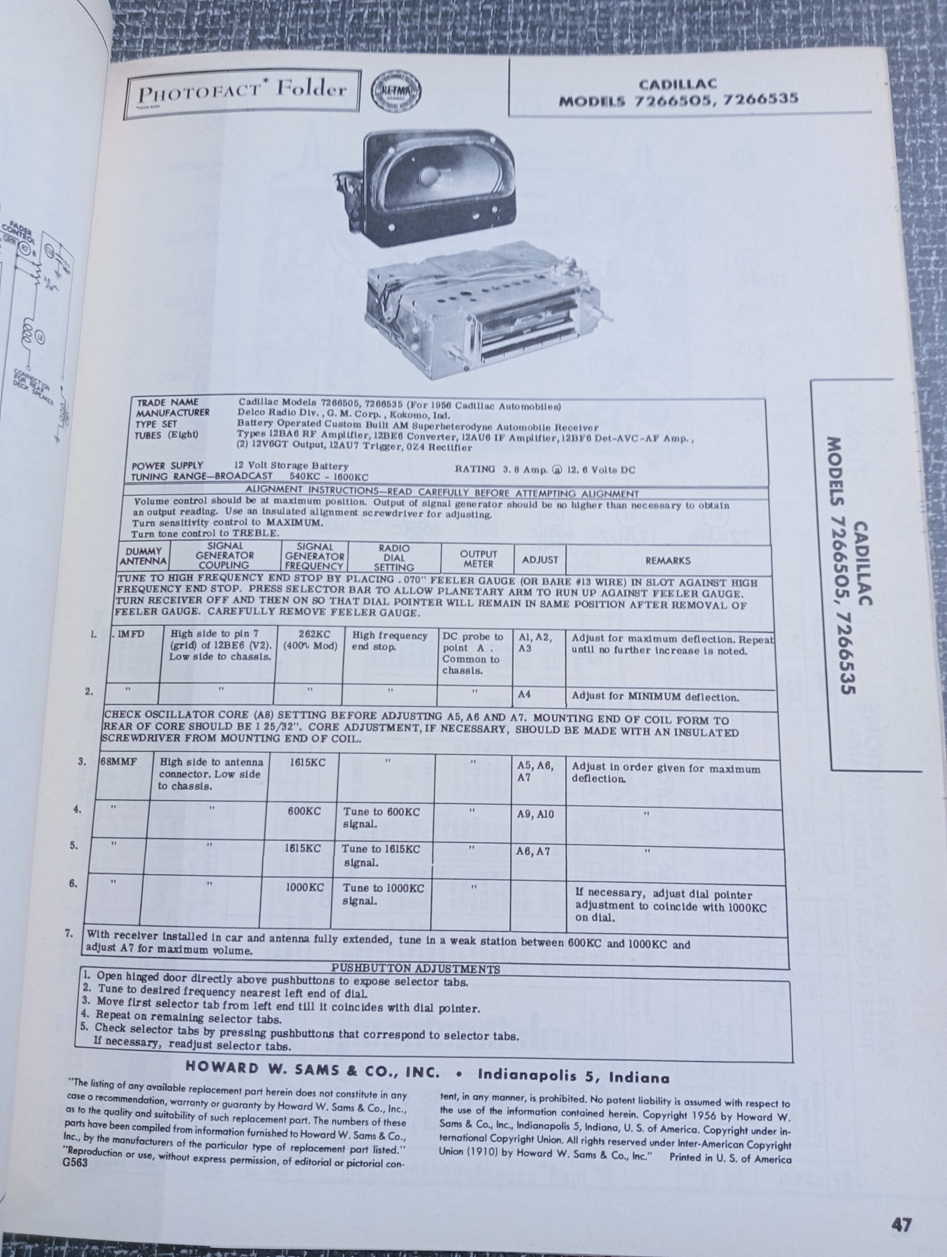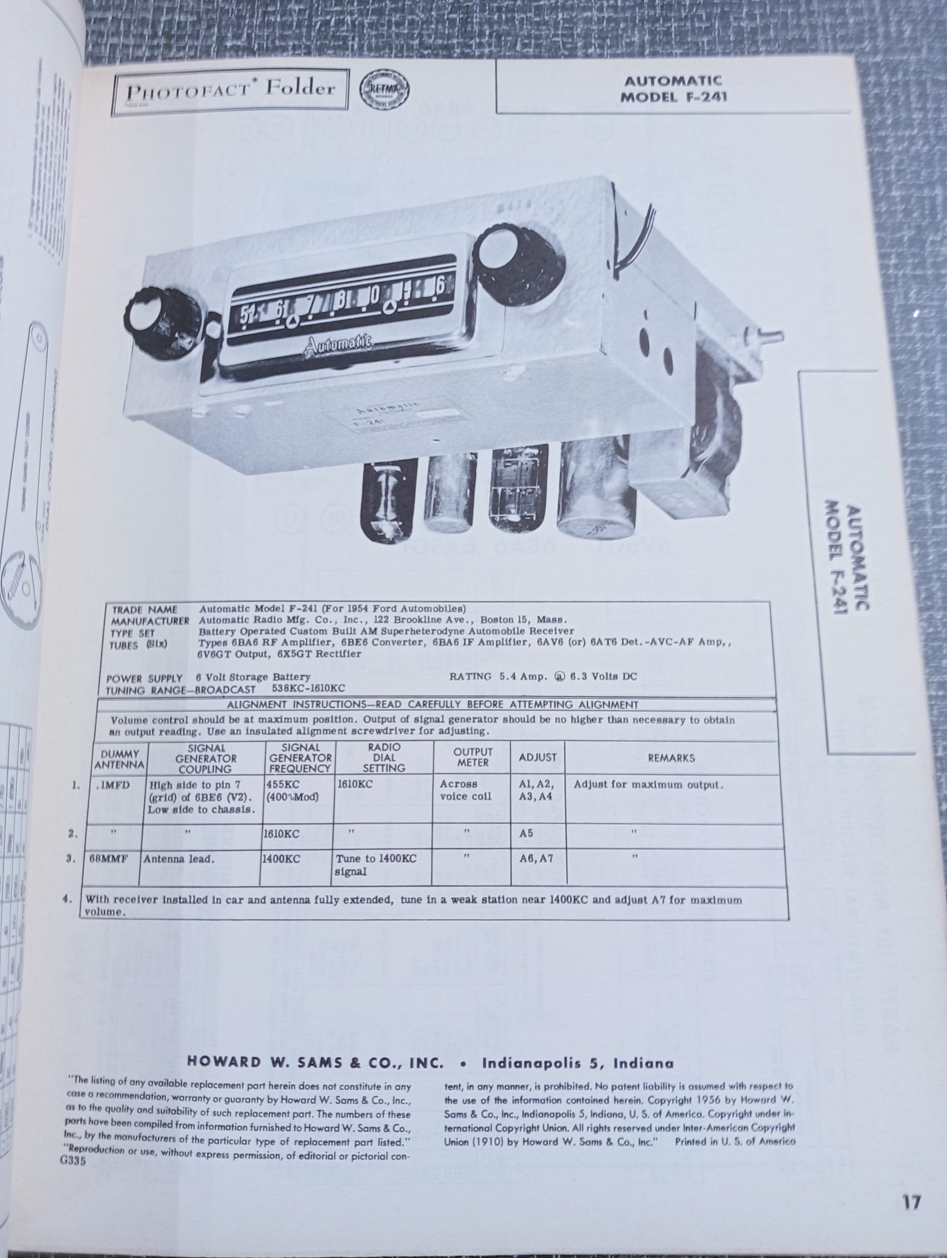Autoradio informatie, schema’s, onderdelen, parts, partially sts, photos voor USA autoradio’s 1955-1956