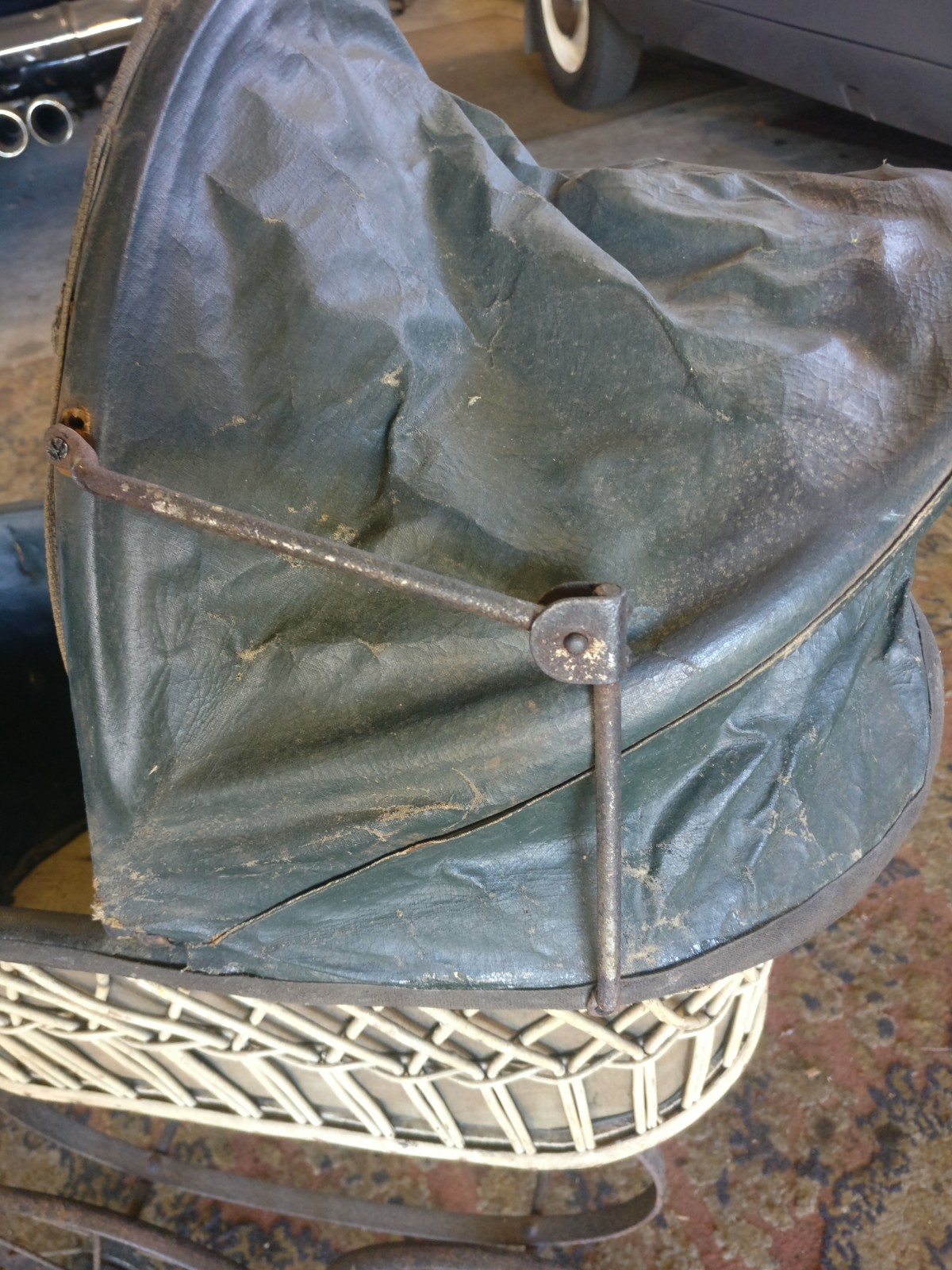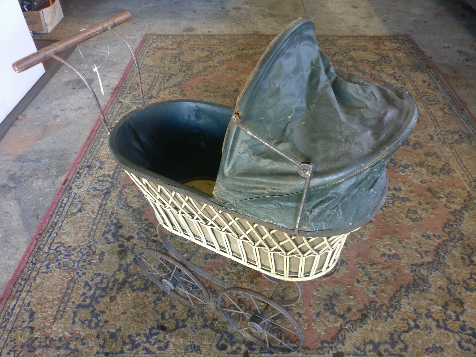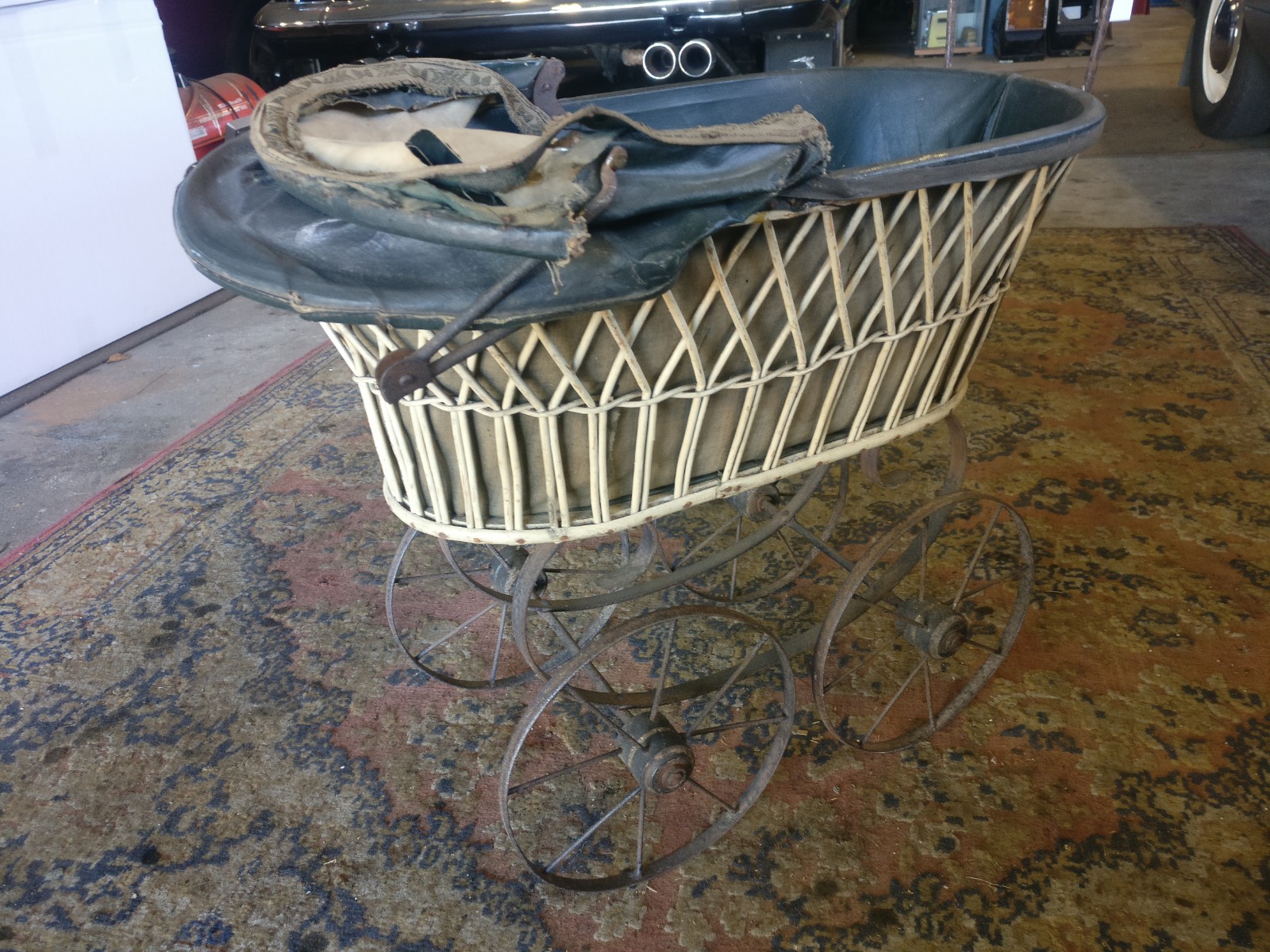 Rotan wagen met stalenwielen en (op te knappen) huifje