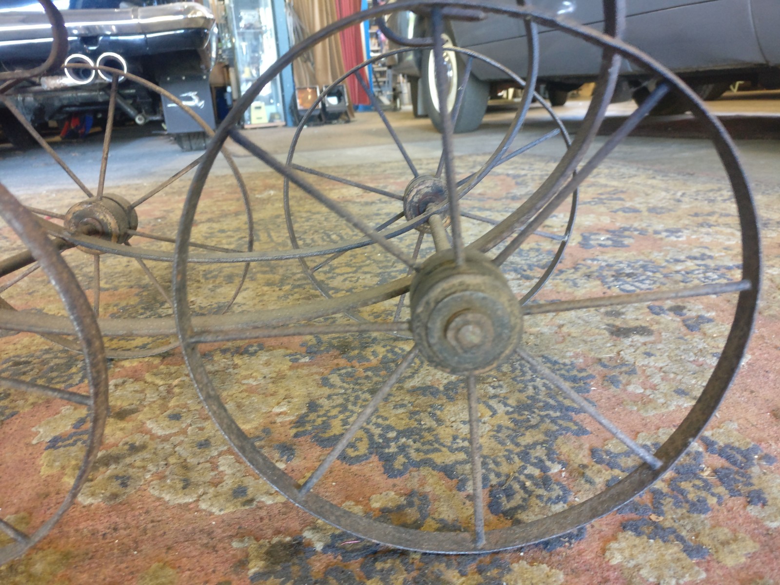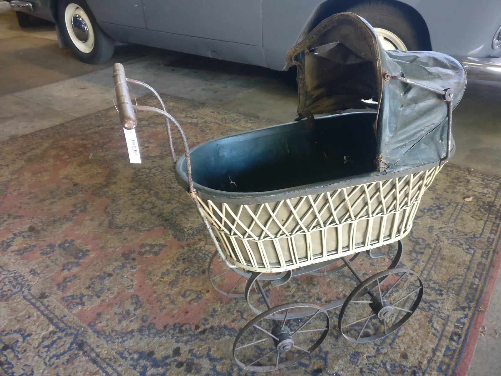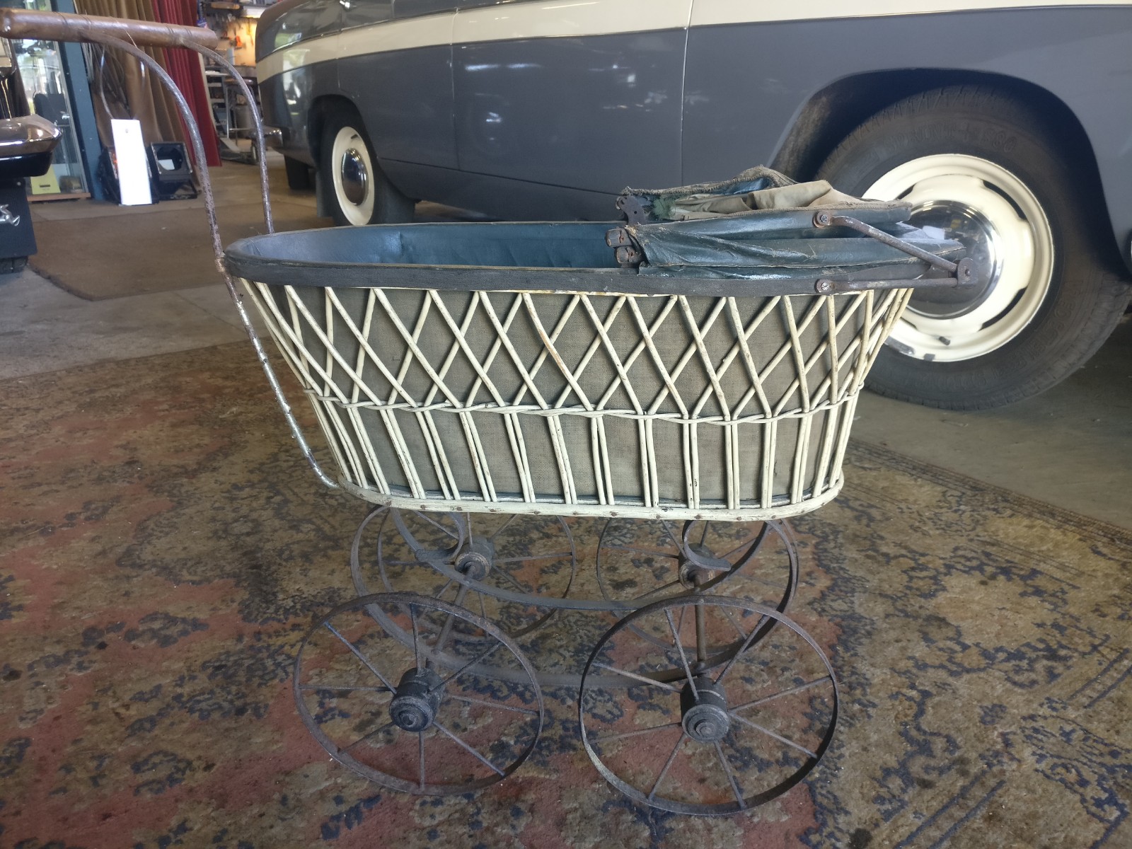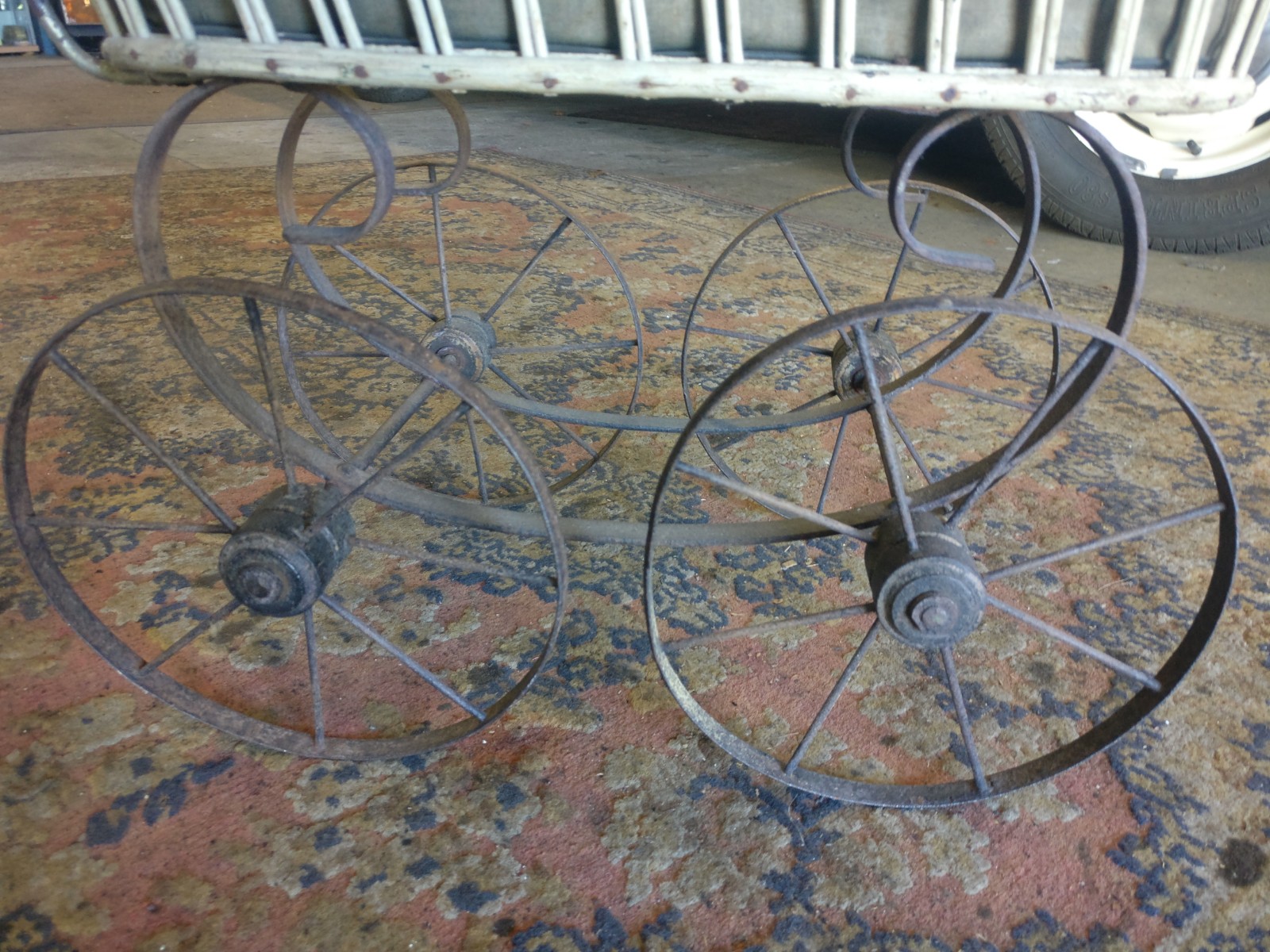 Rotan wagen met stalenwielen en (op te knappen) huifje