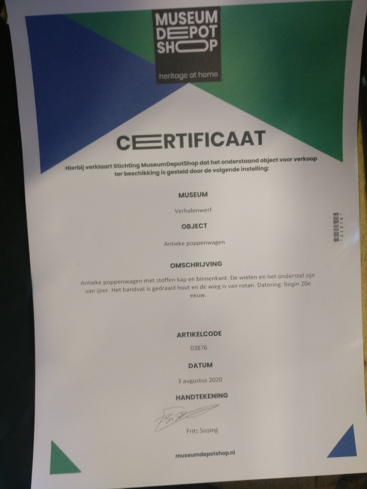 inclusief certificaat Museumshop