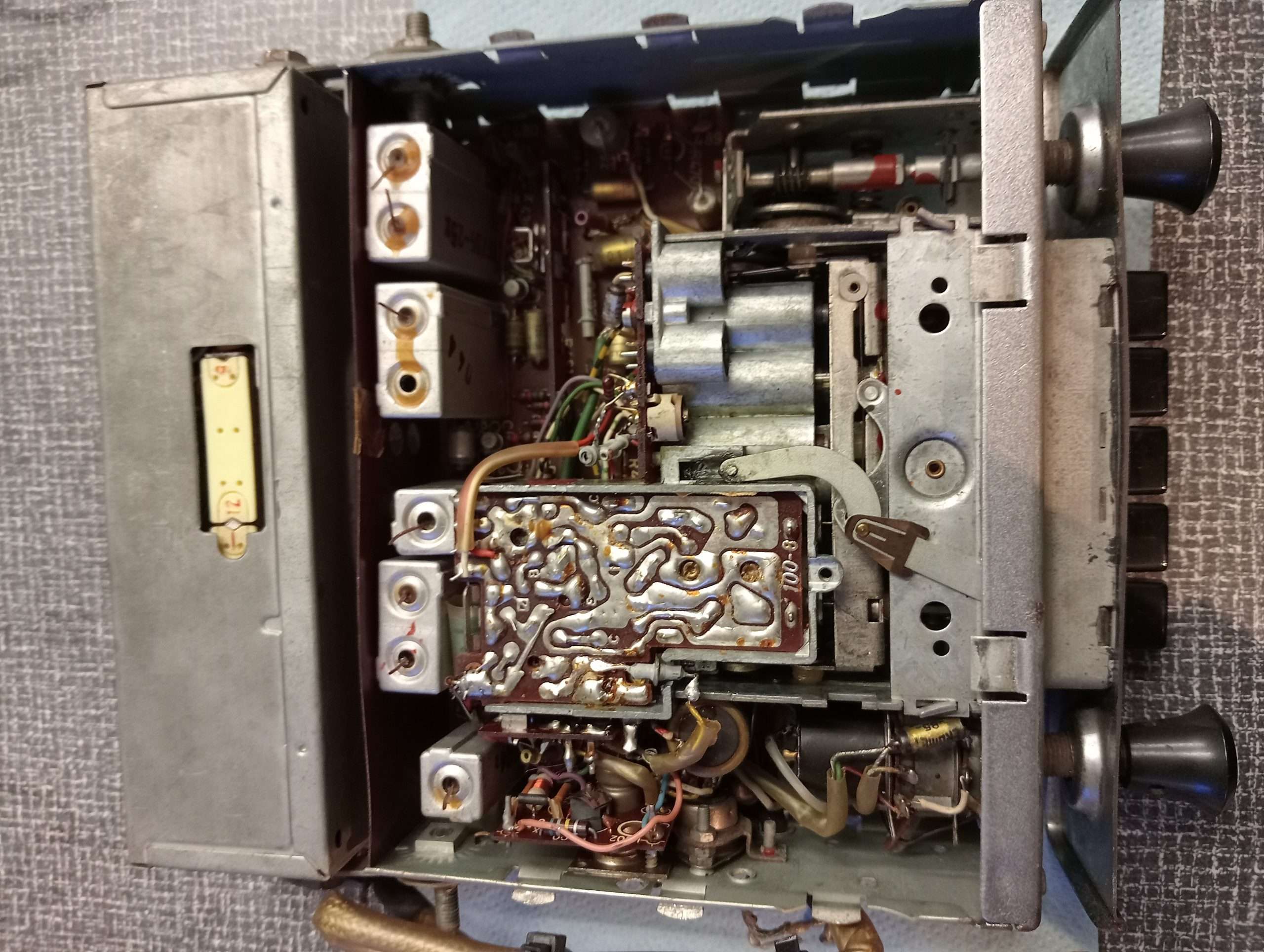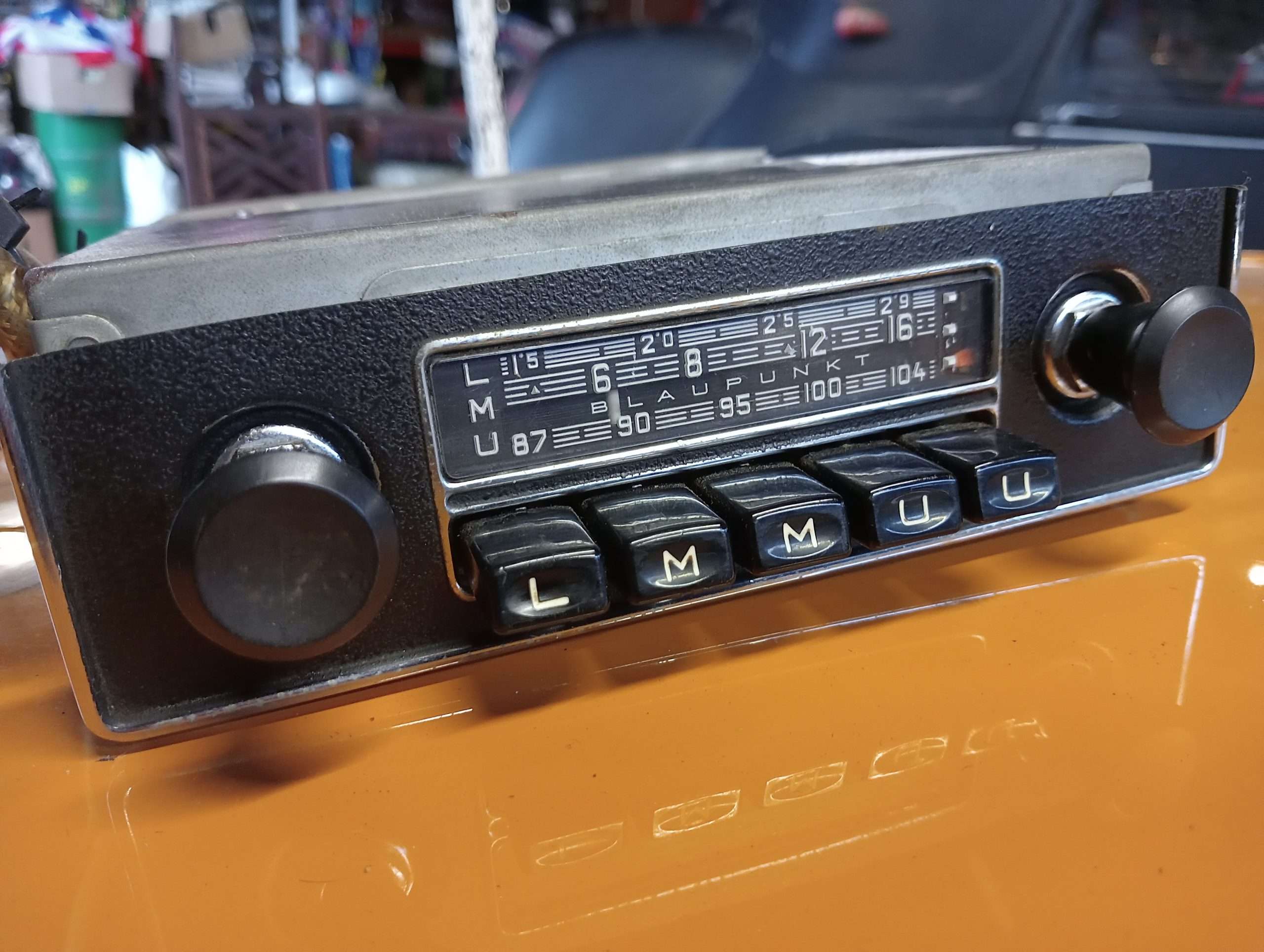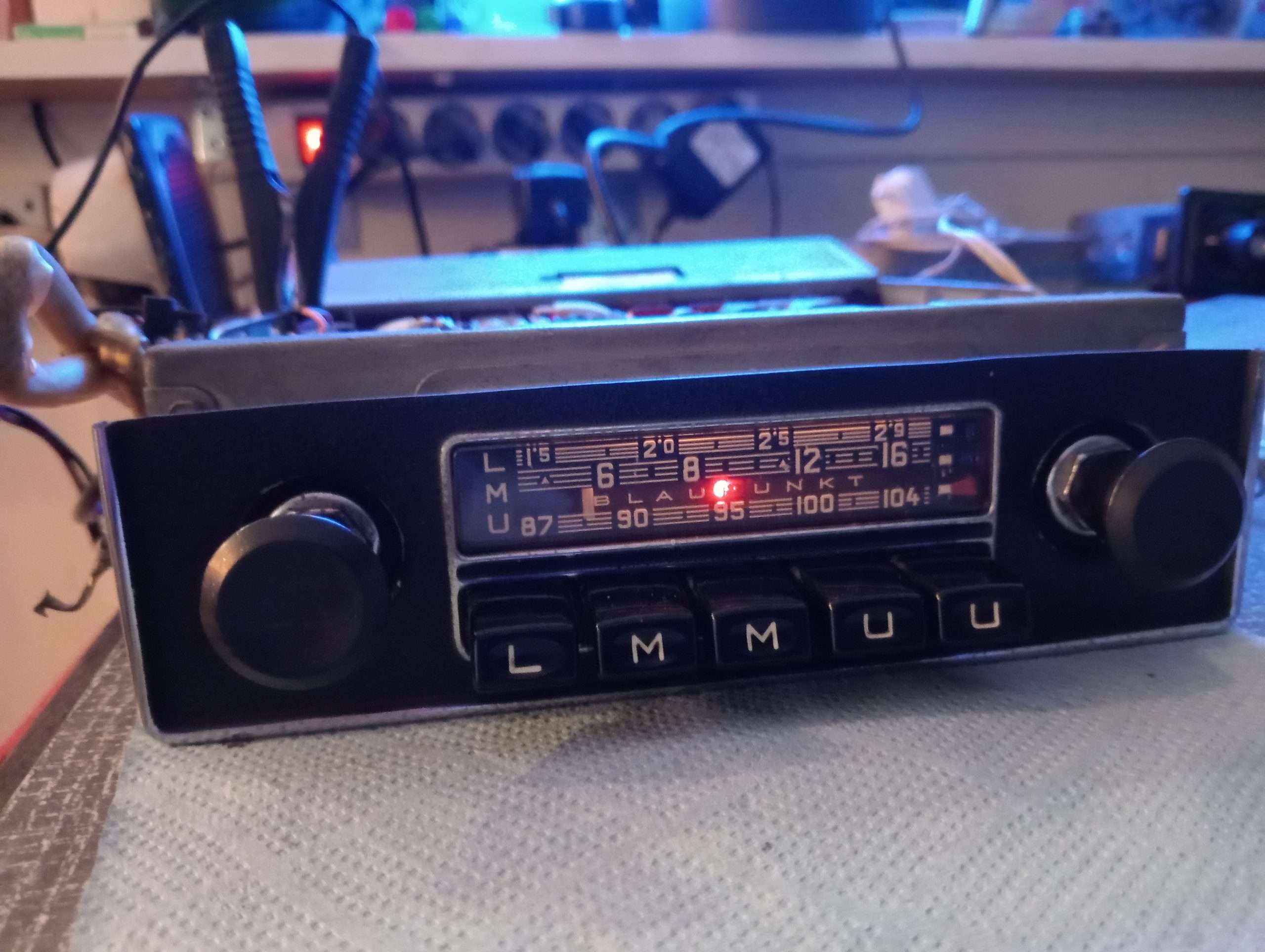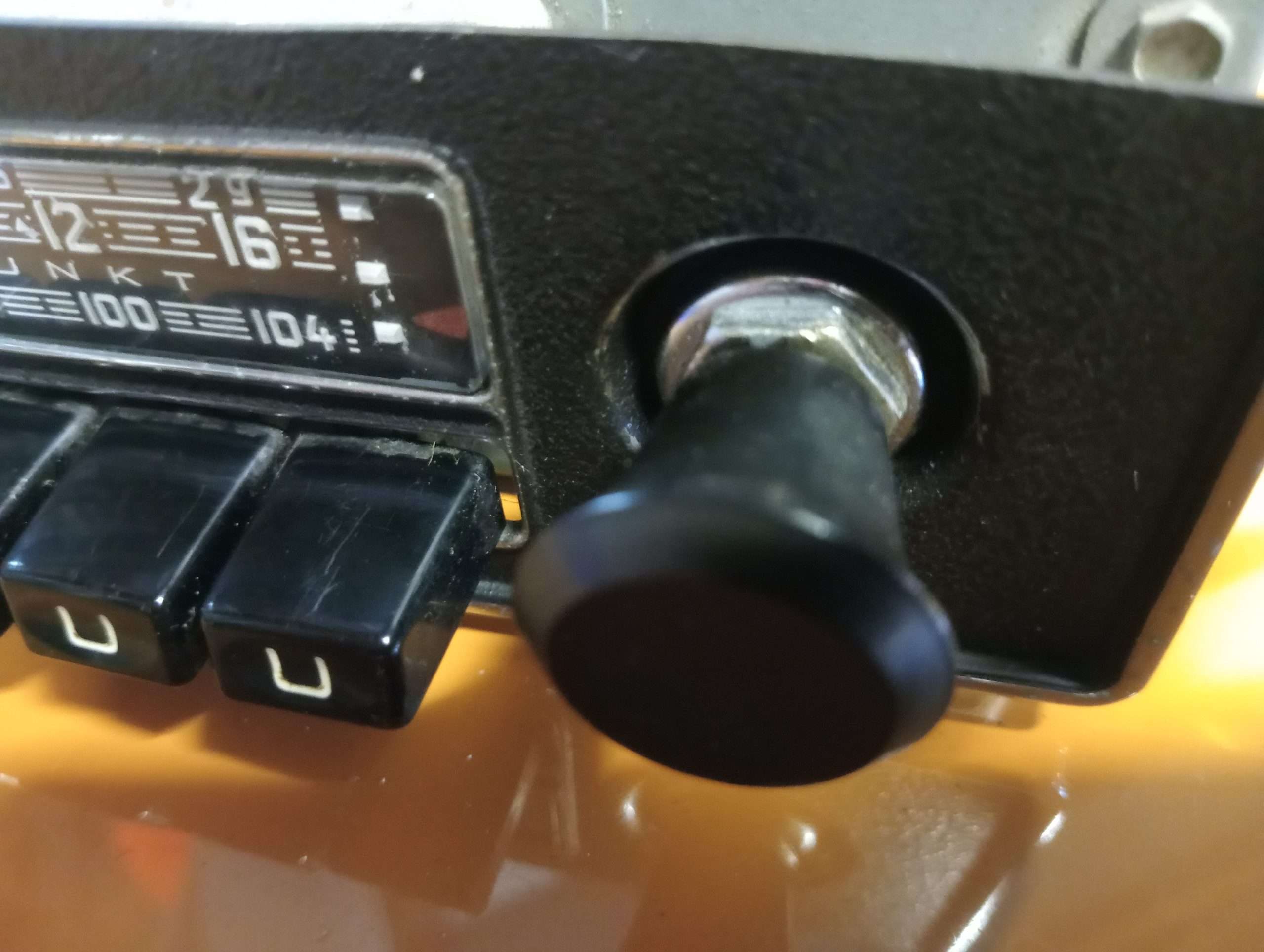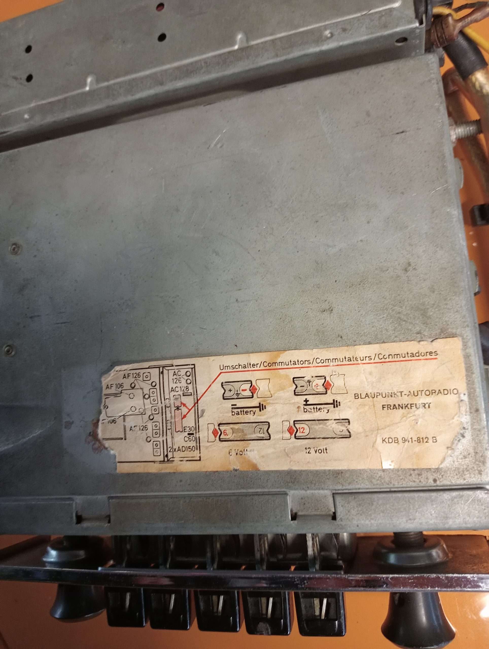 Getest, volume, tone (linker knop uittrekken en draaien) voorkeurtoetsen,  zender-zoeker, rode LMU aanwijzer en verlichting werken op 6 Volt. Radio heeft echter geen ontvangst maar geeft ruis. Mechanisch in orde. Binnenzijde ziet er verder goed uit. Zie foto’s.