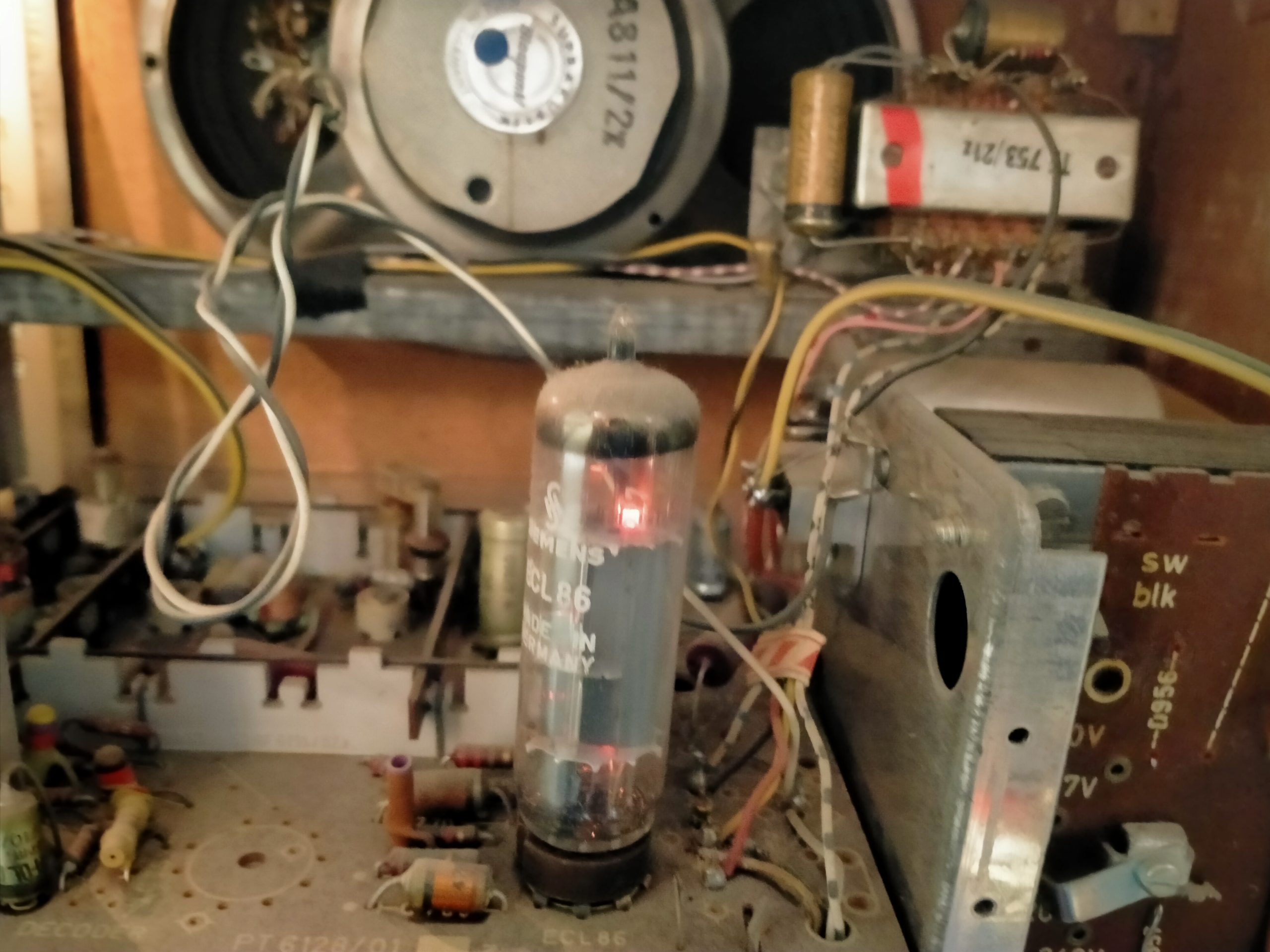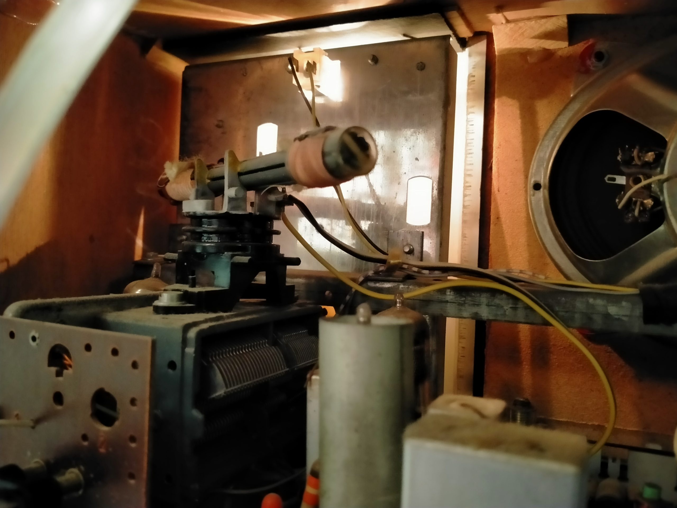 Verlichting brandt, radio piept, waarschijnlijk lekke condensator.
