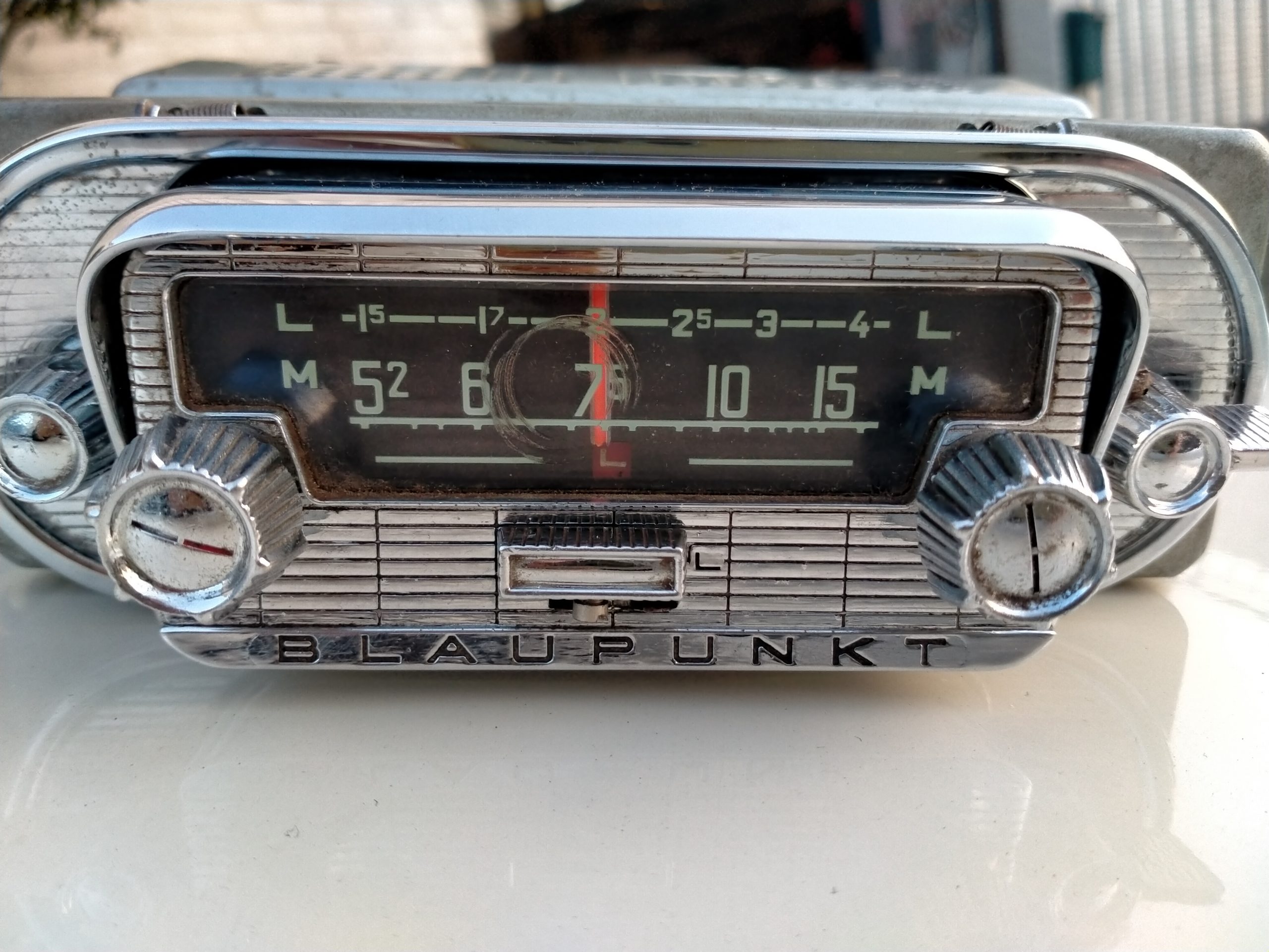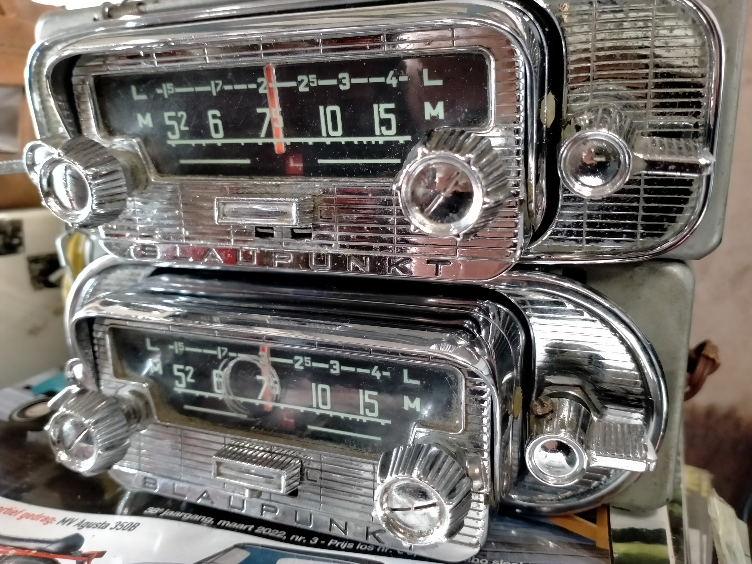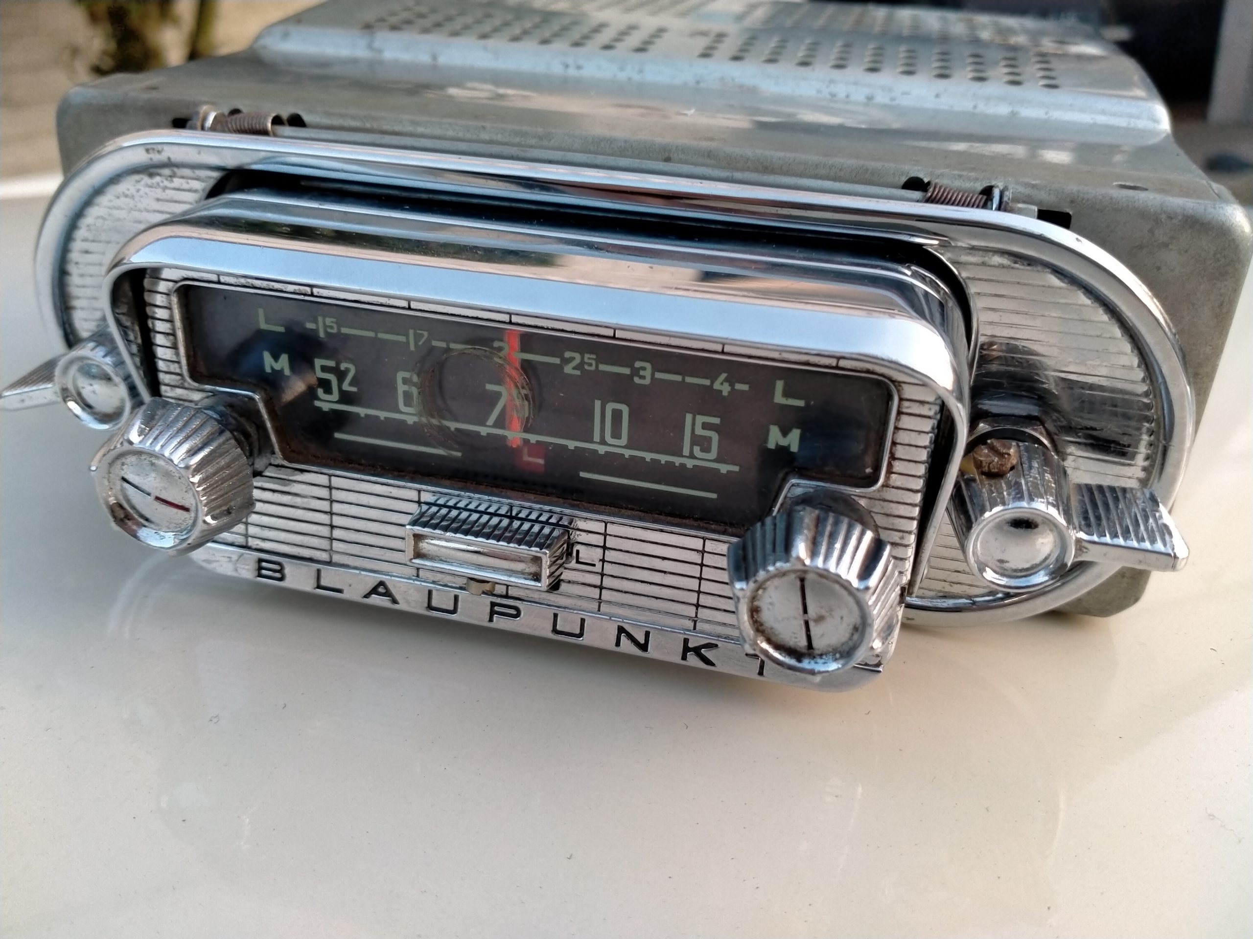 Volledig chrome front met chrome bedieningsknoppen.