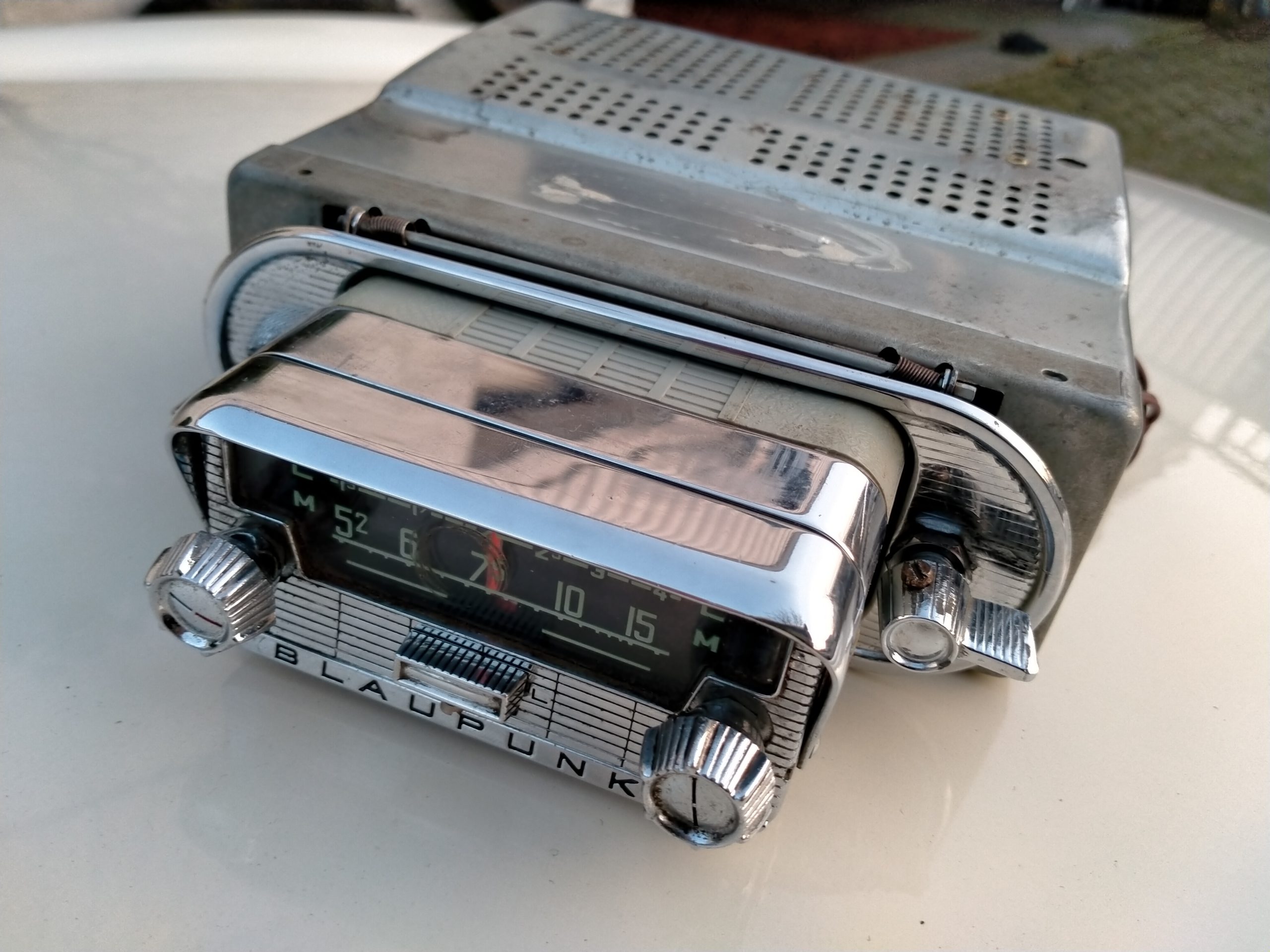 Uniek, kan gebruikt worden als autoradio en als draagbare radio, de eerste radio met slee!