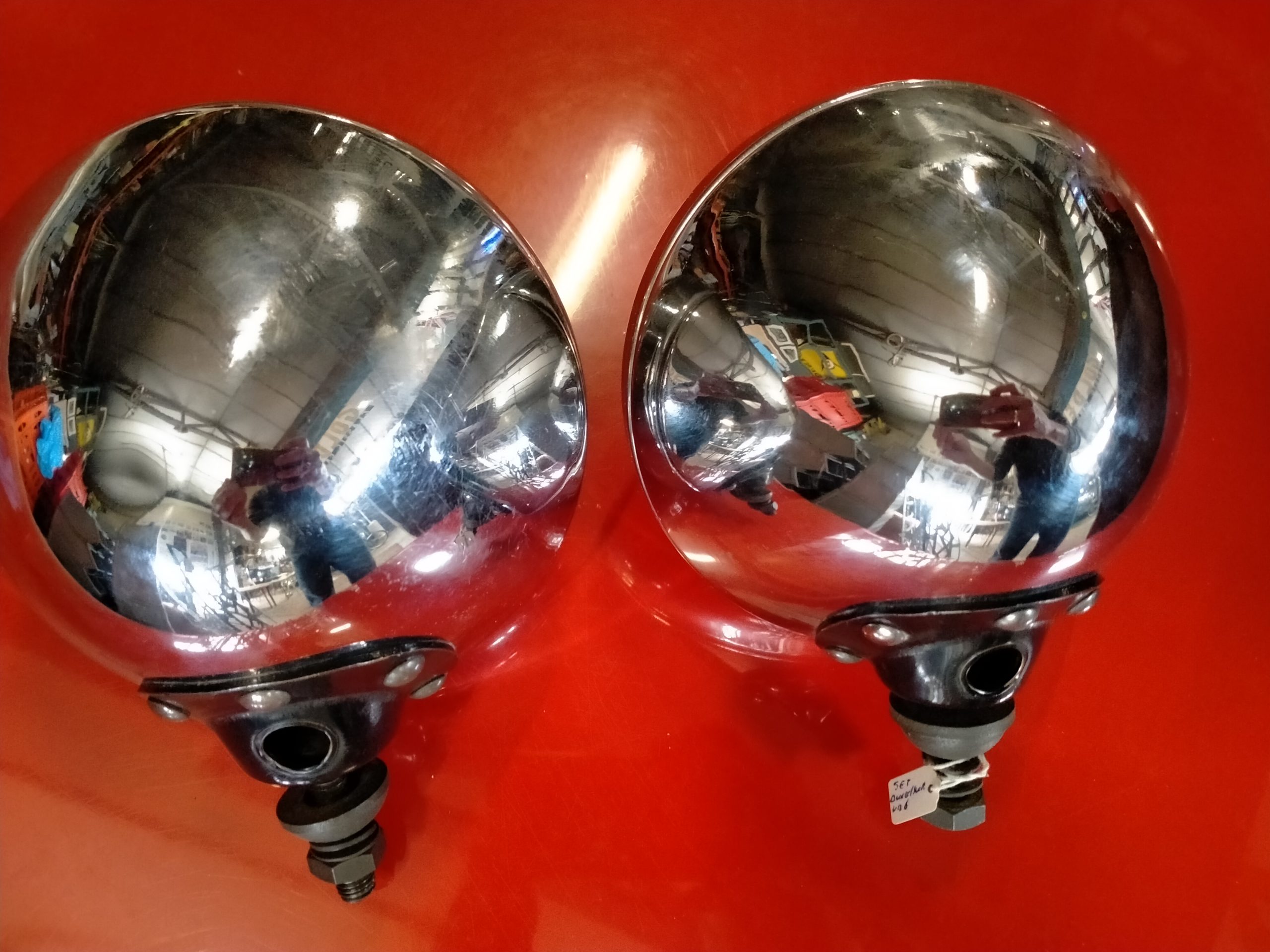 Gave exemplaren VB6 bol glas, nette roestvrije reflector, mooi Chrome. 1 lamp heeft aan achterzijde een heel klein deukje.