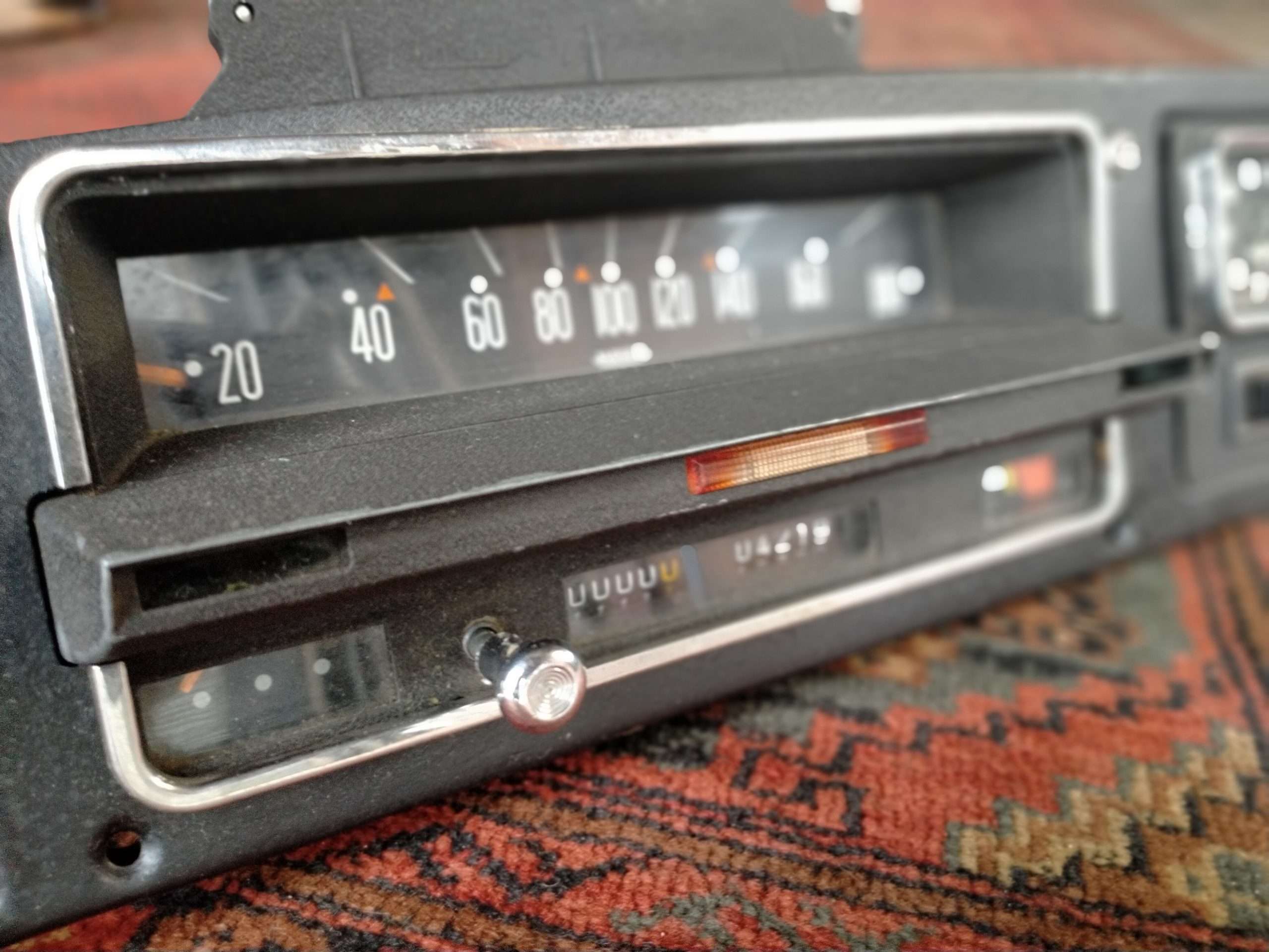 Kilometerteller, temperatuurmeter, benzinemeter, Jaeger klokje,