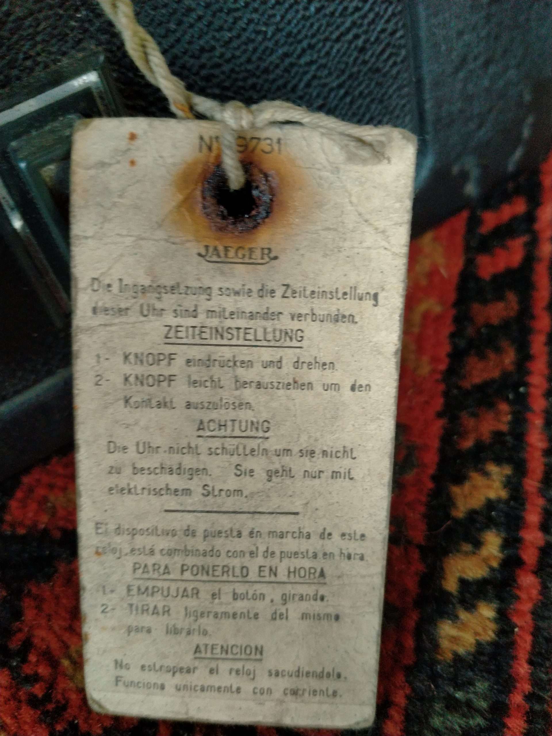 4 schakelaars, gebruiksaanwijzing Jaeger klok (moet gereviseerd worden)