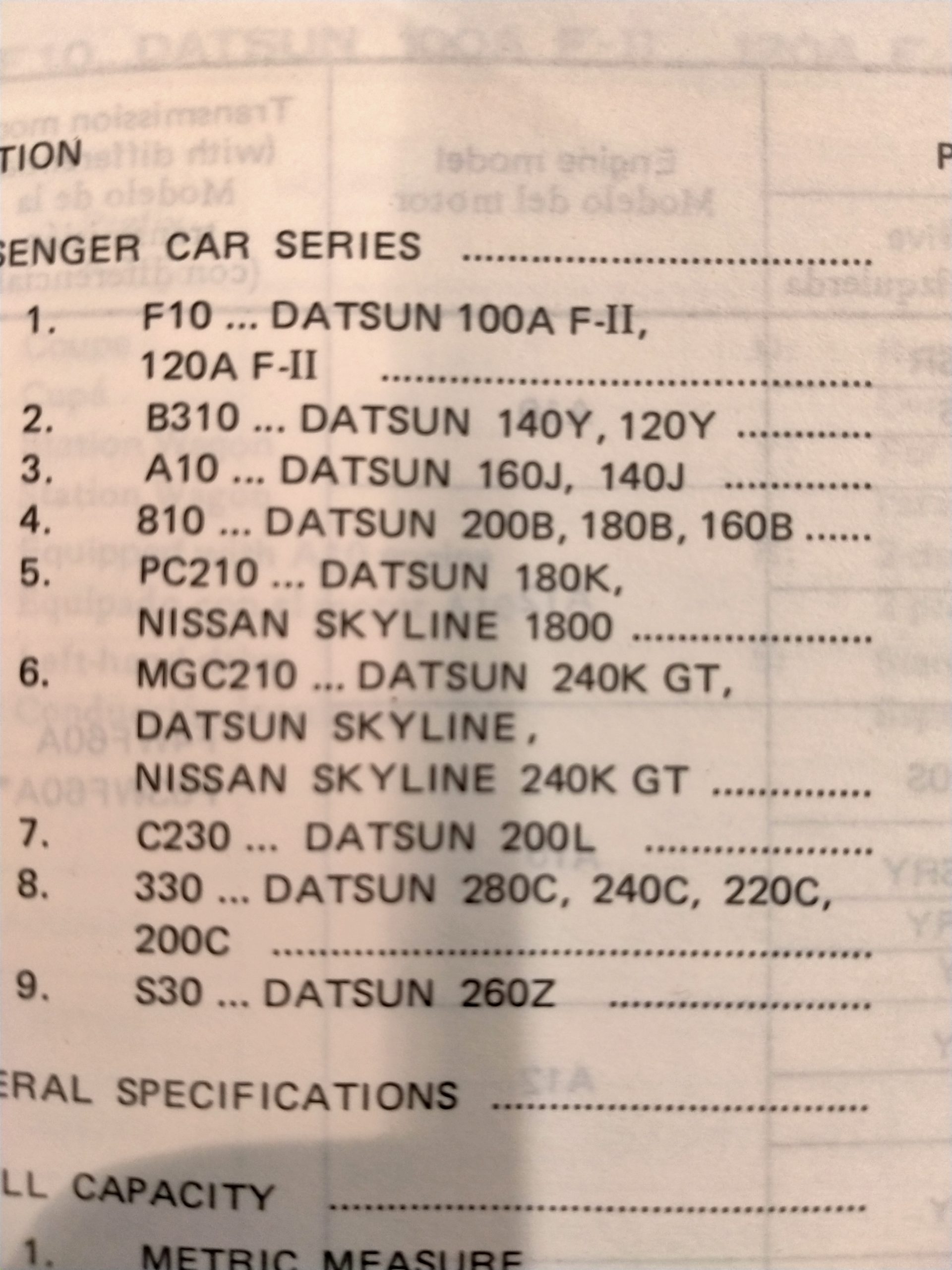 Oa Datsun 100A, B110, B210, 610,710, 140-160J, 160-180B, C130, 260C, 240Z,260Z, Nissan, etcc