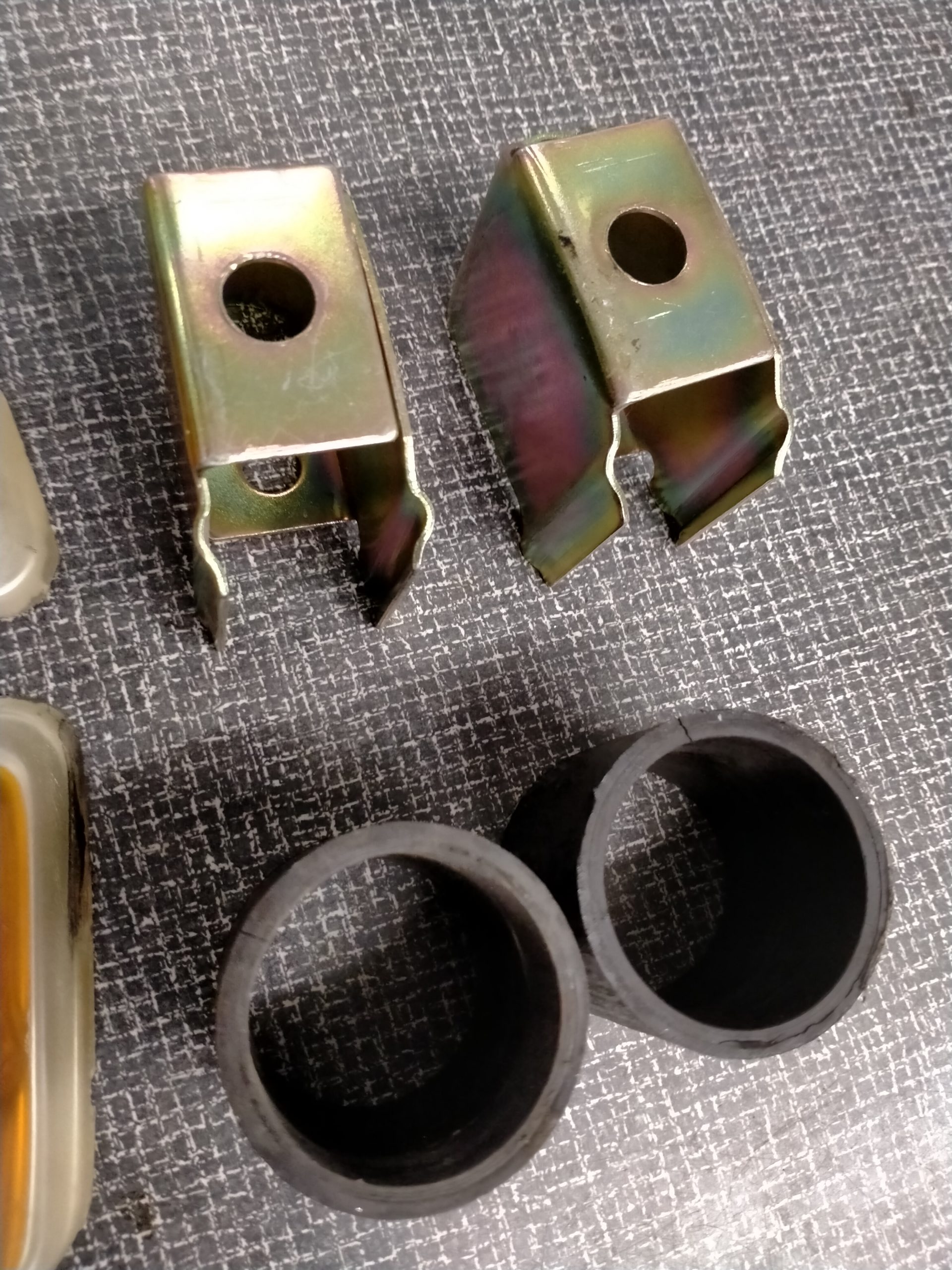 2 originele gebruikte achterlicht reflectoren, 2 nieuwe bumpersteunen en 2 rubbers (slecht) allen van Fiat 500