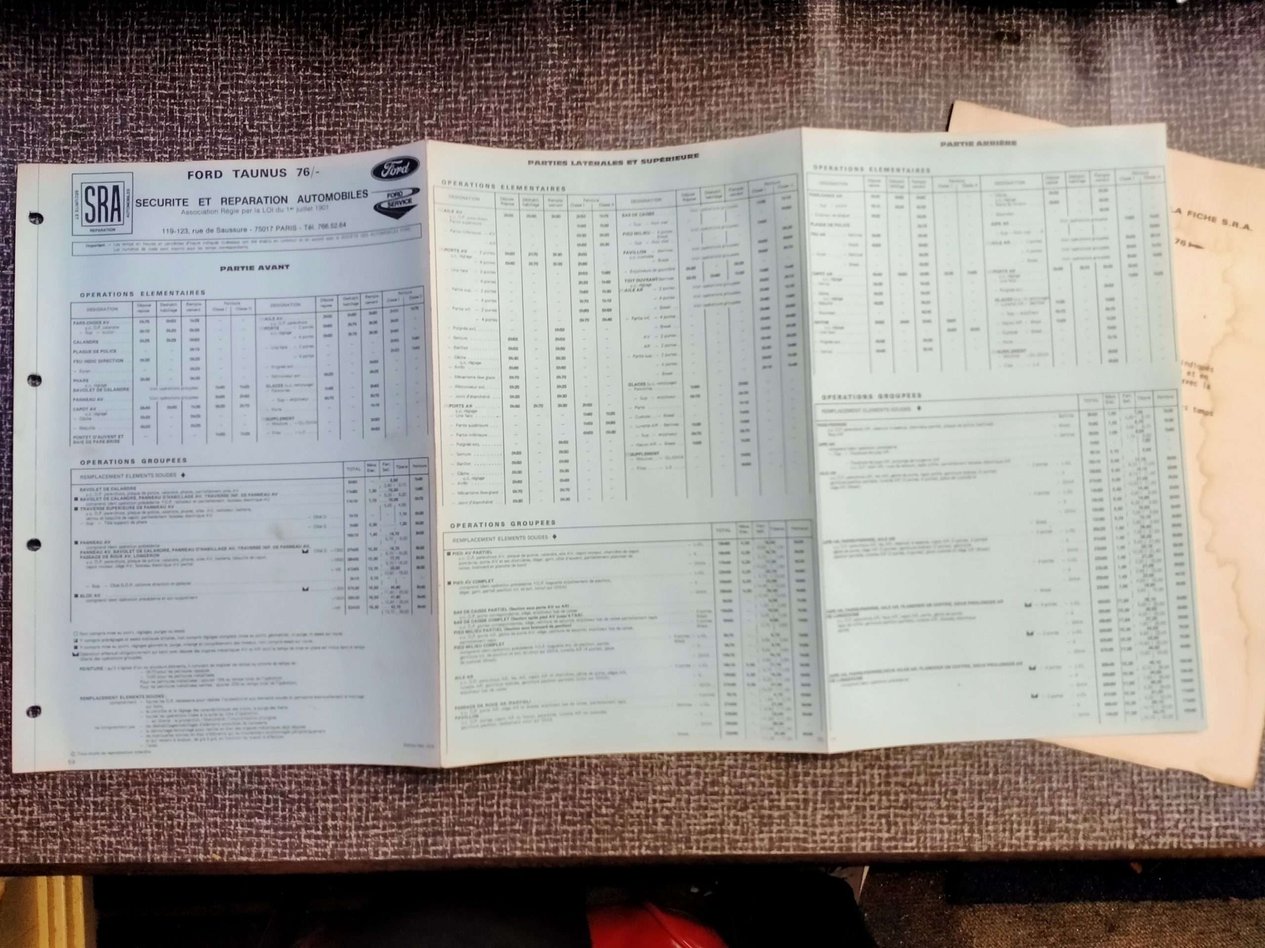 Ford Taunus reparatie kaart