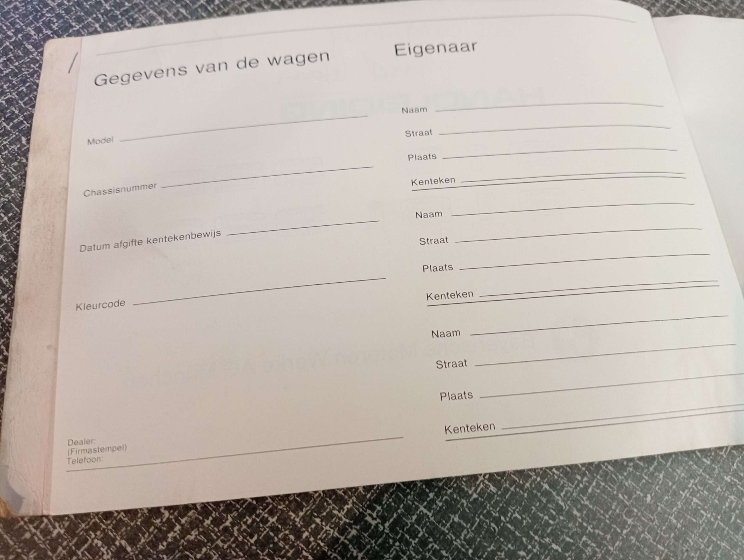 Blanco eigenaars blad