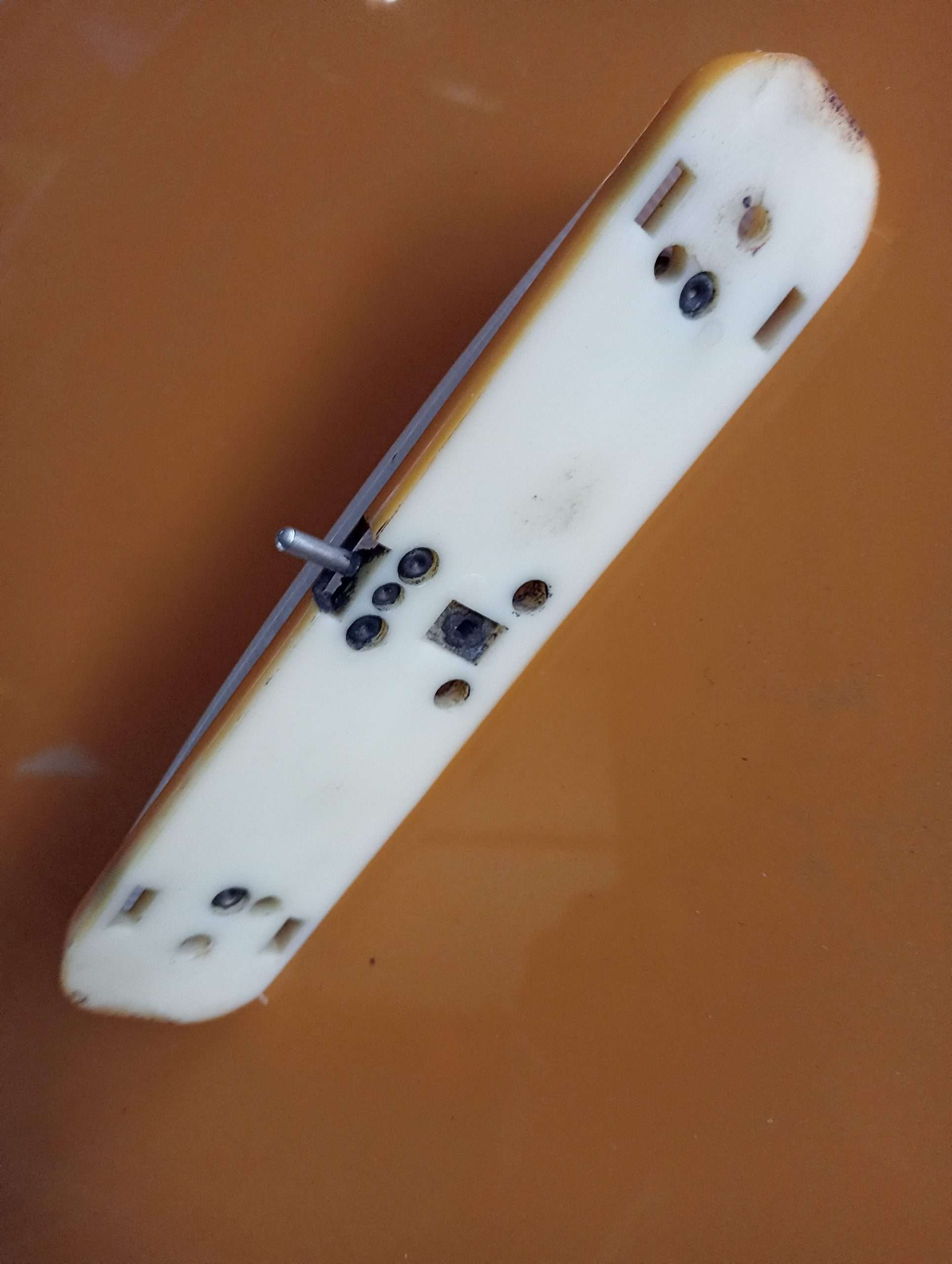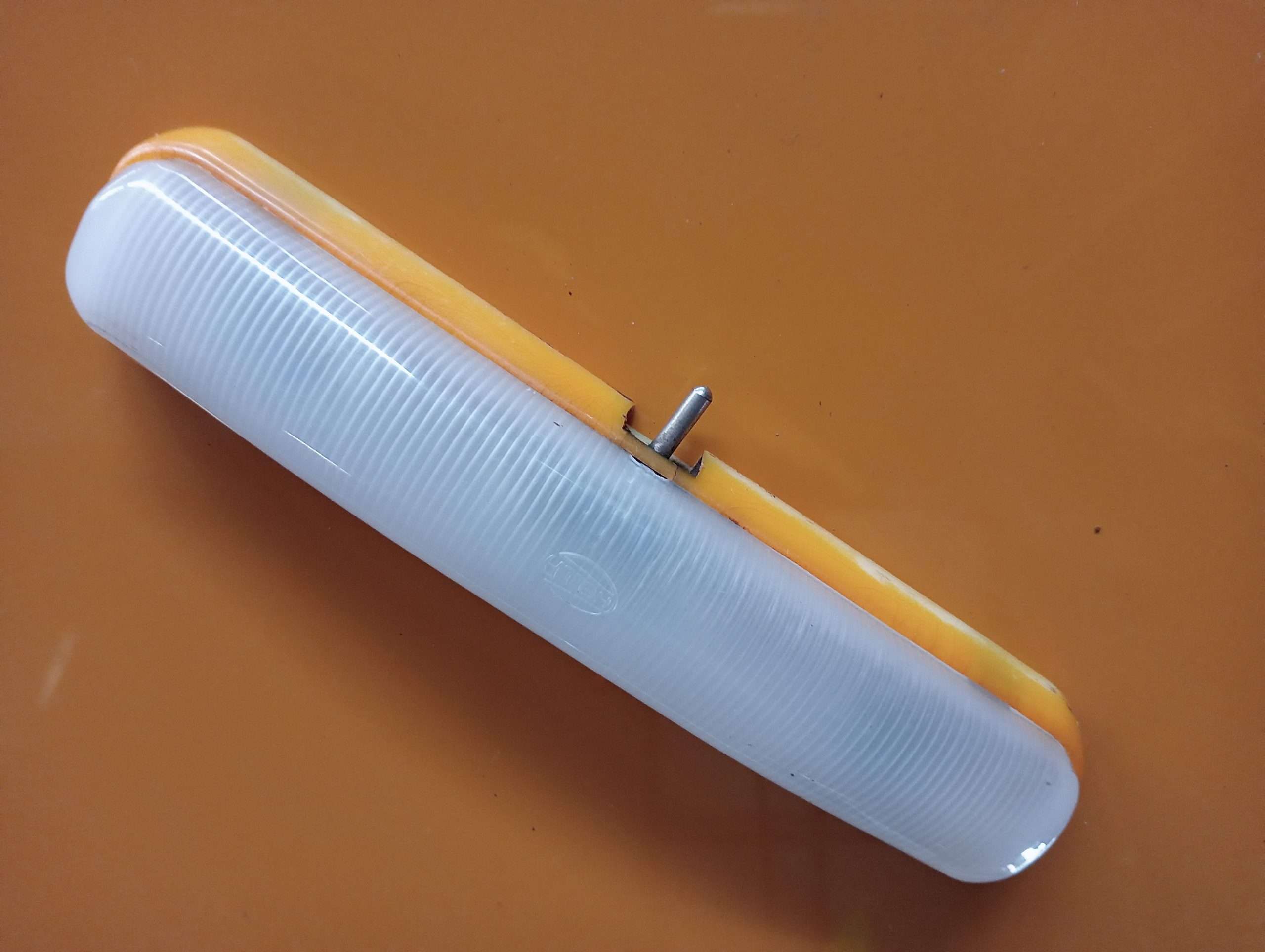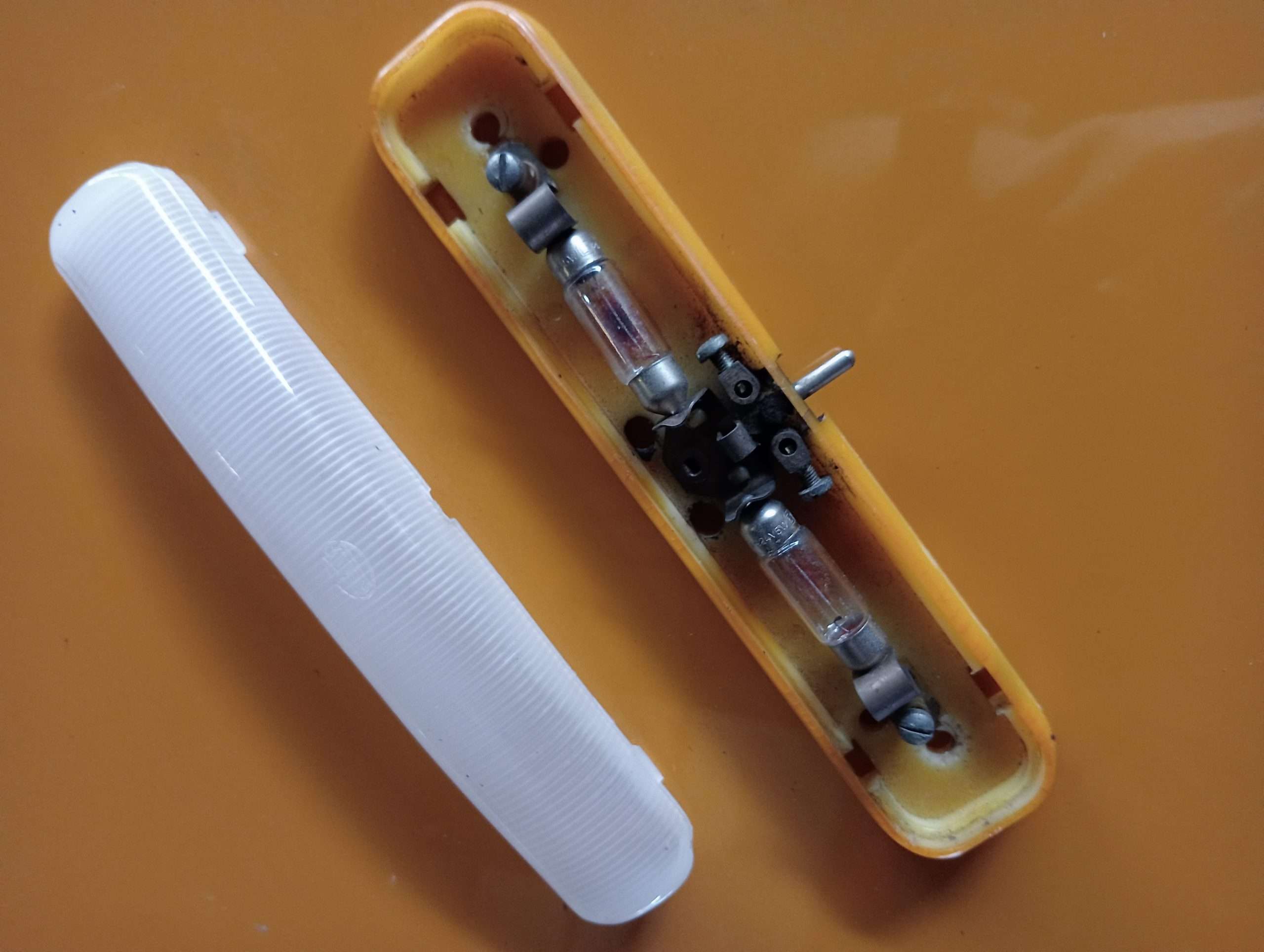 Onderkant, fitting huis enigzins verkleurd, wit kunstof kap netjes