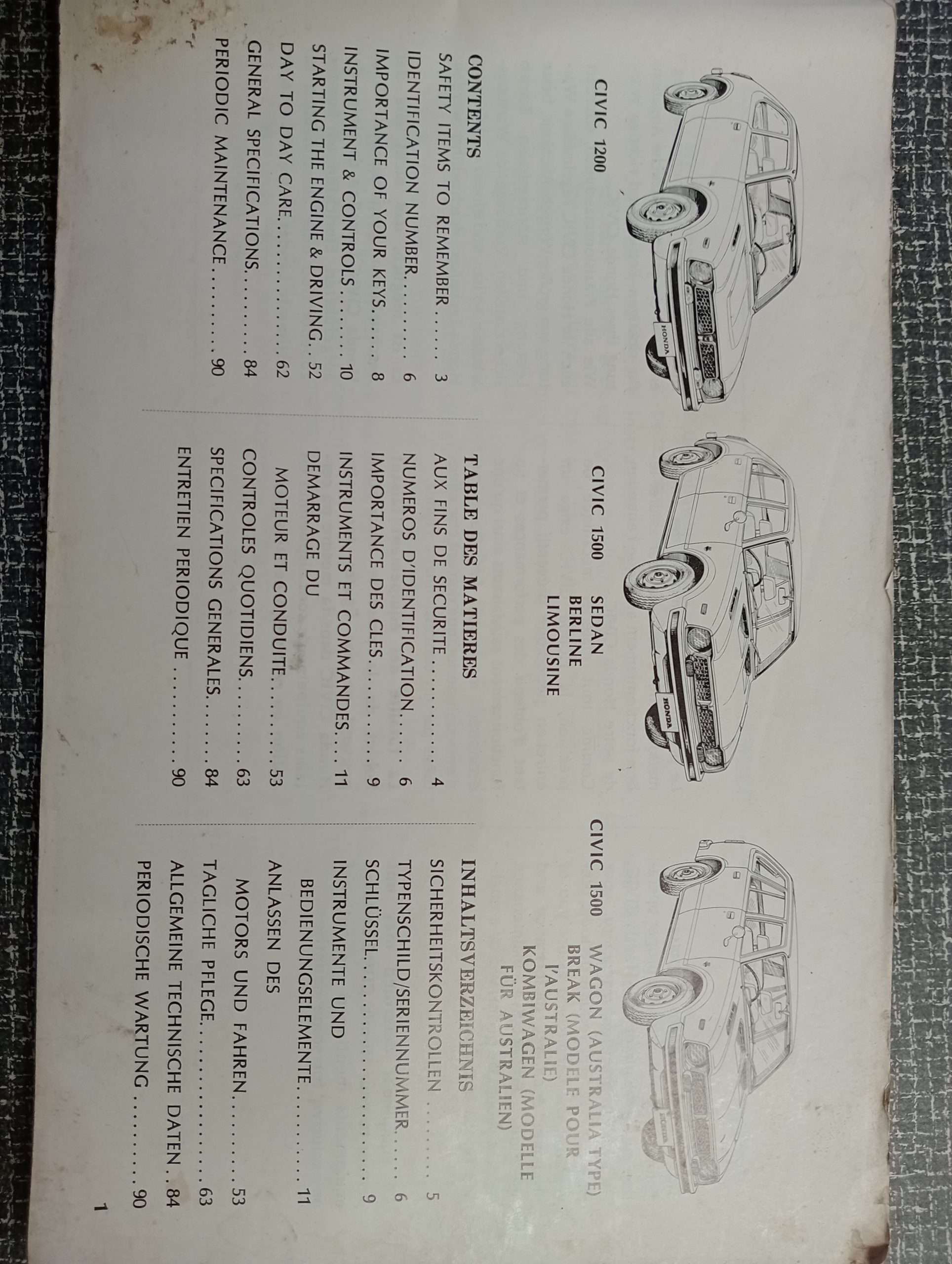 Honda Civic 1200/1500 owners manual