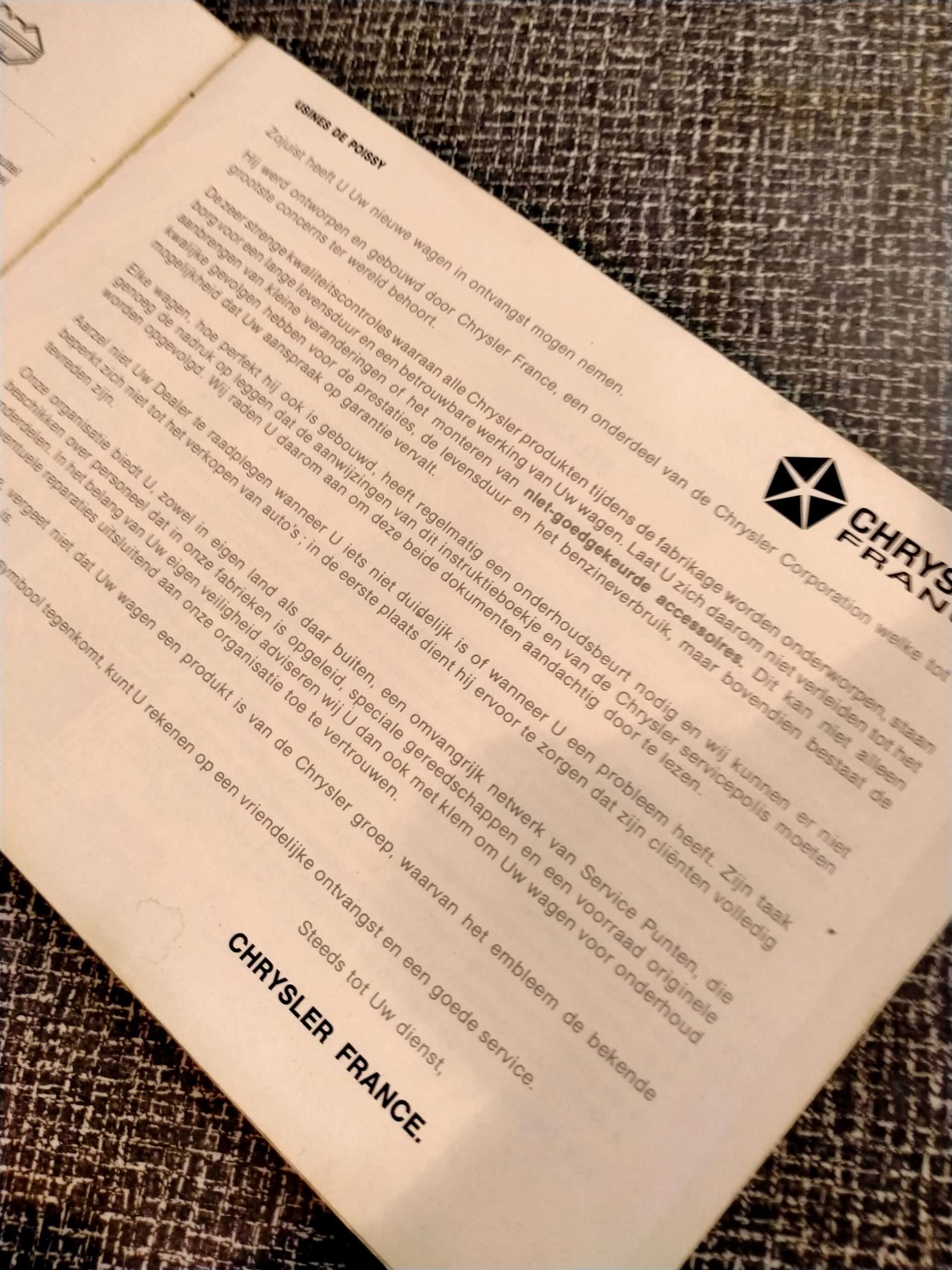 Instruktieboekje Chrysler – Simca 1307-08 France