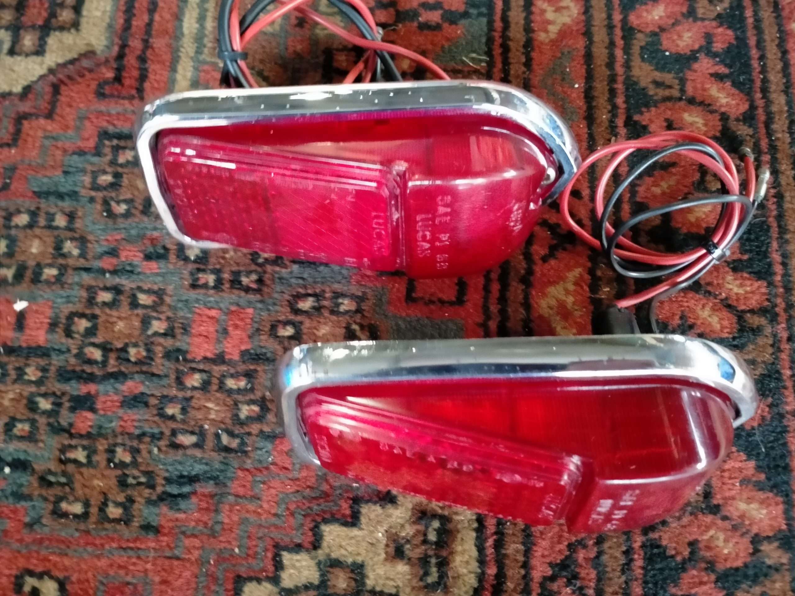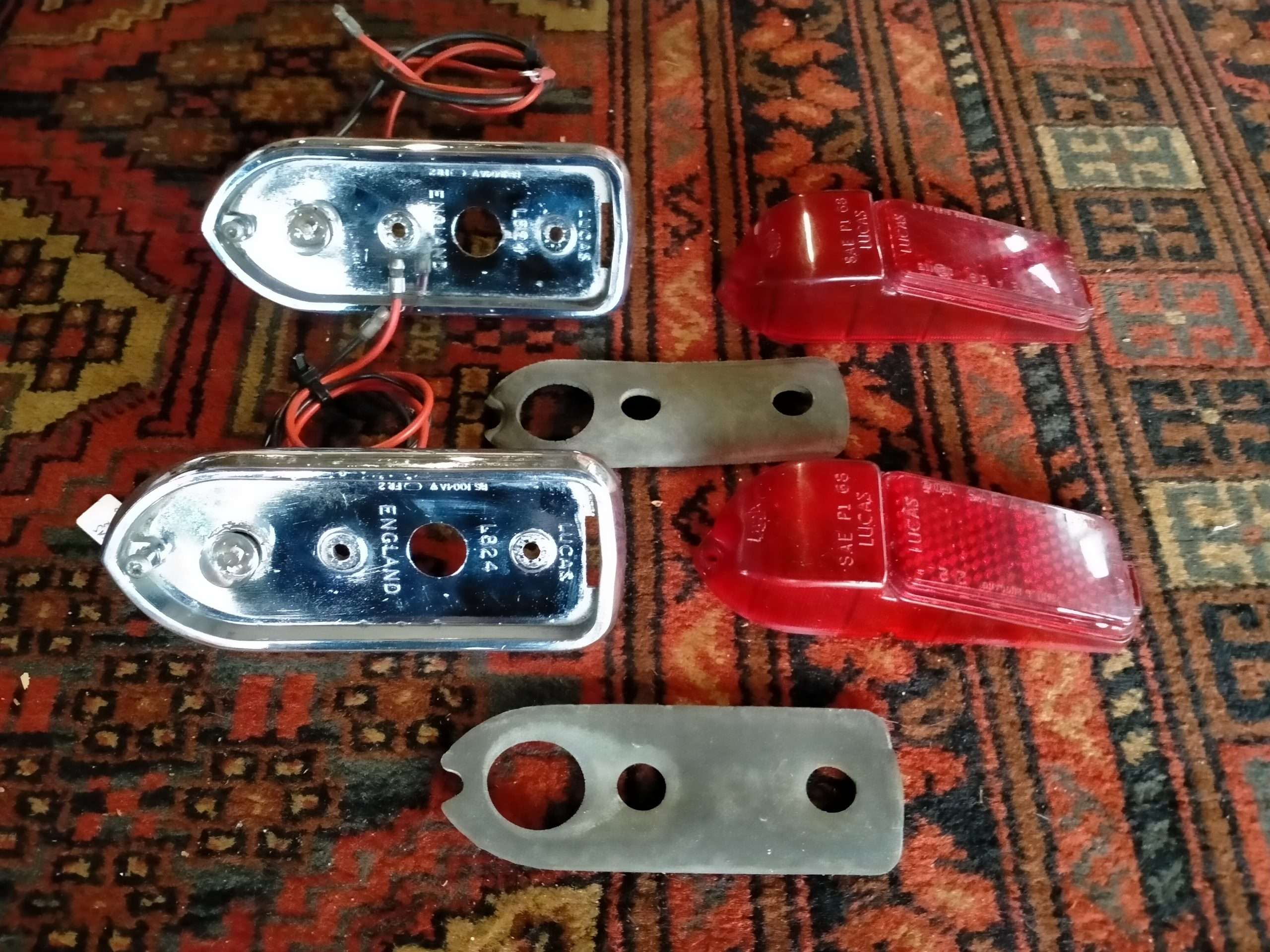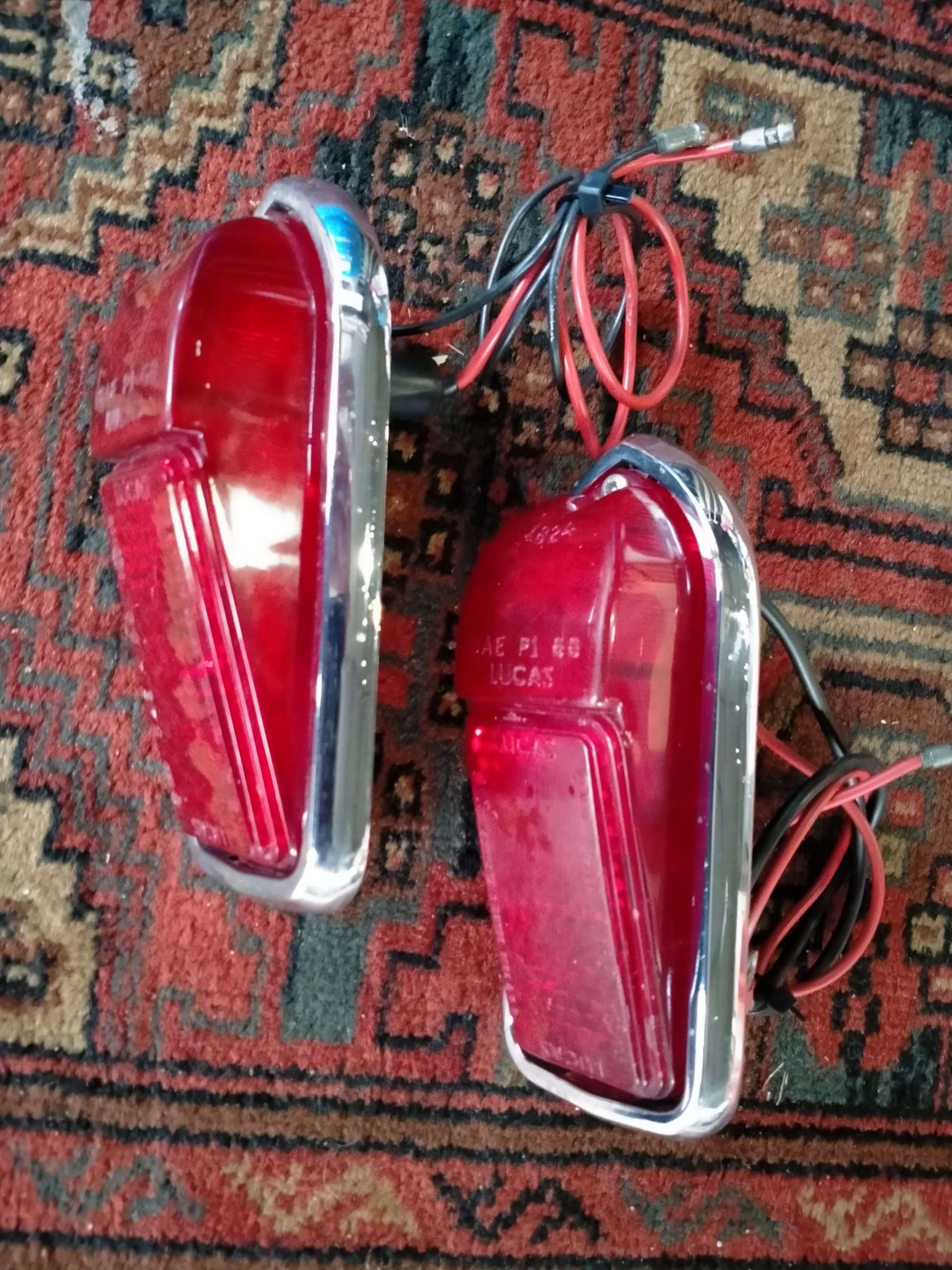 Crome is netjes heeft lichte putvorming, geen roest, nette gave lenzen, inclusief afdichtingsrubbers en lampjes.