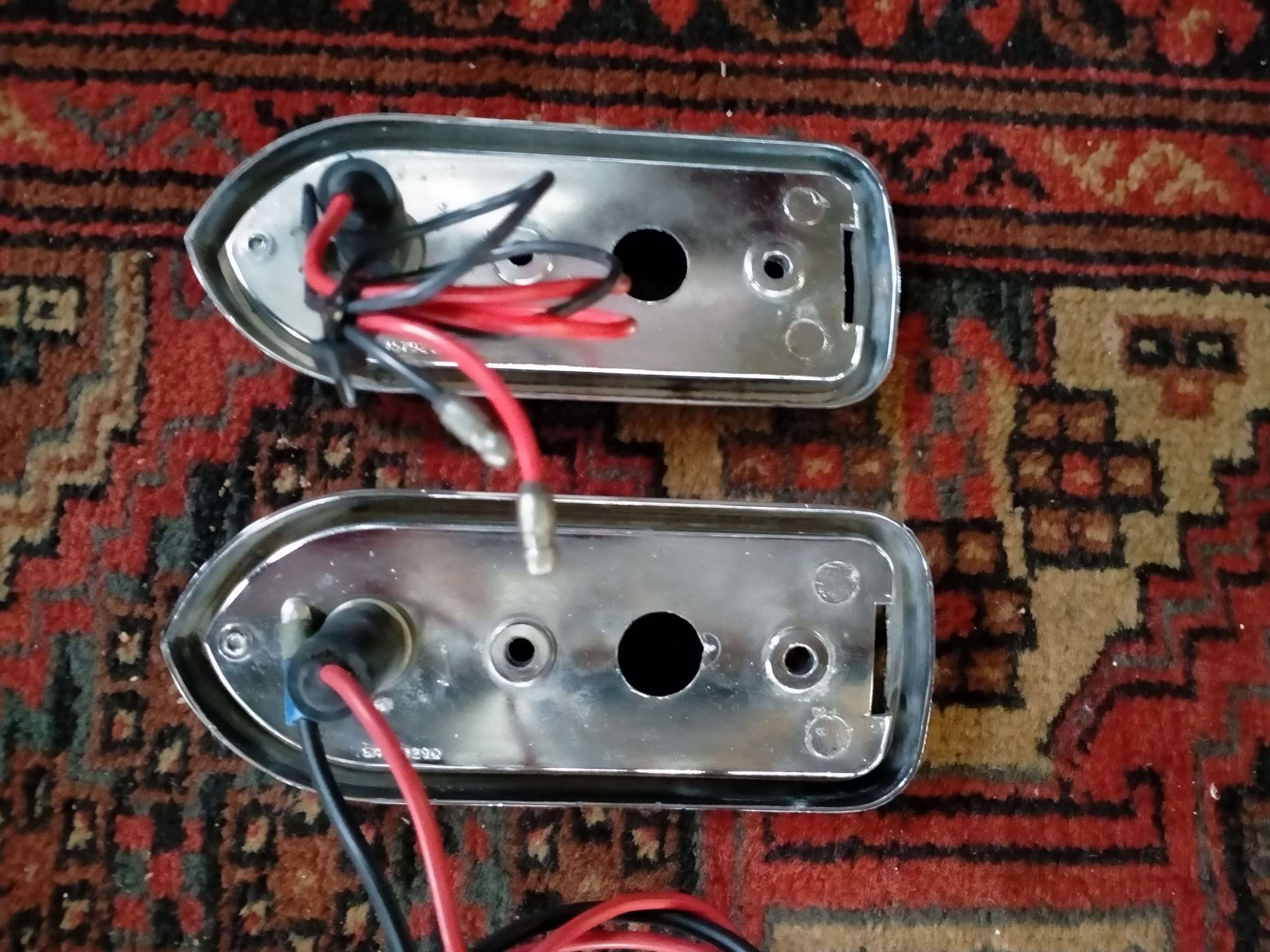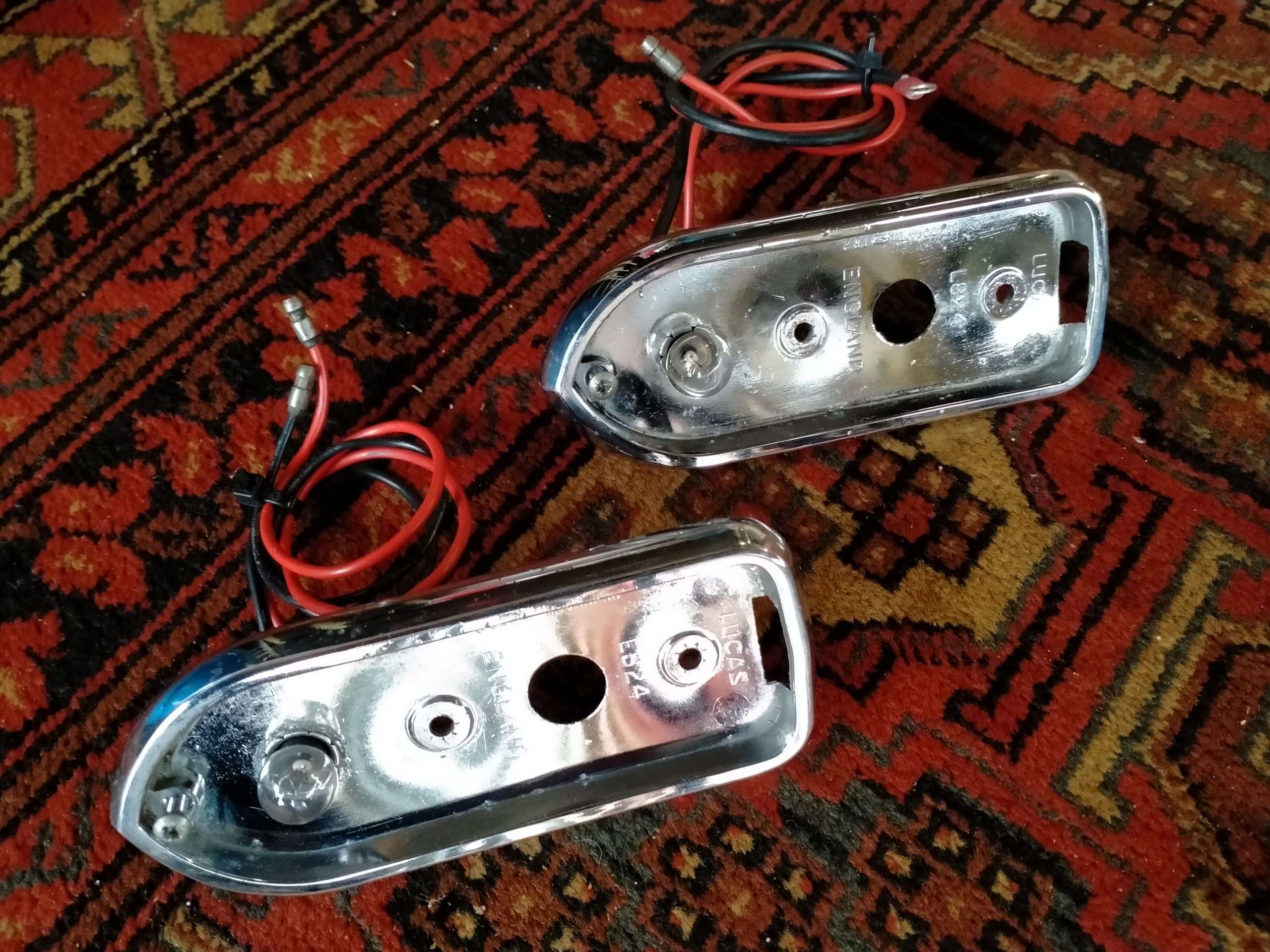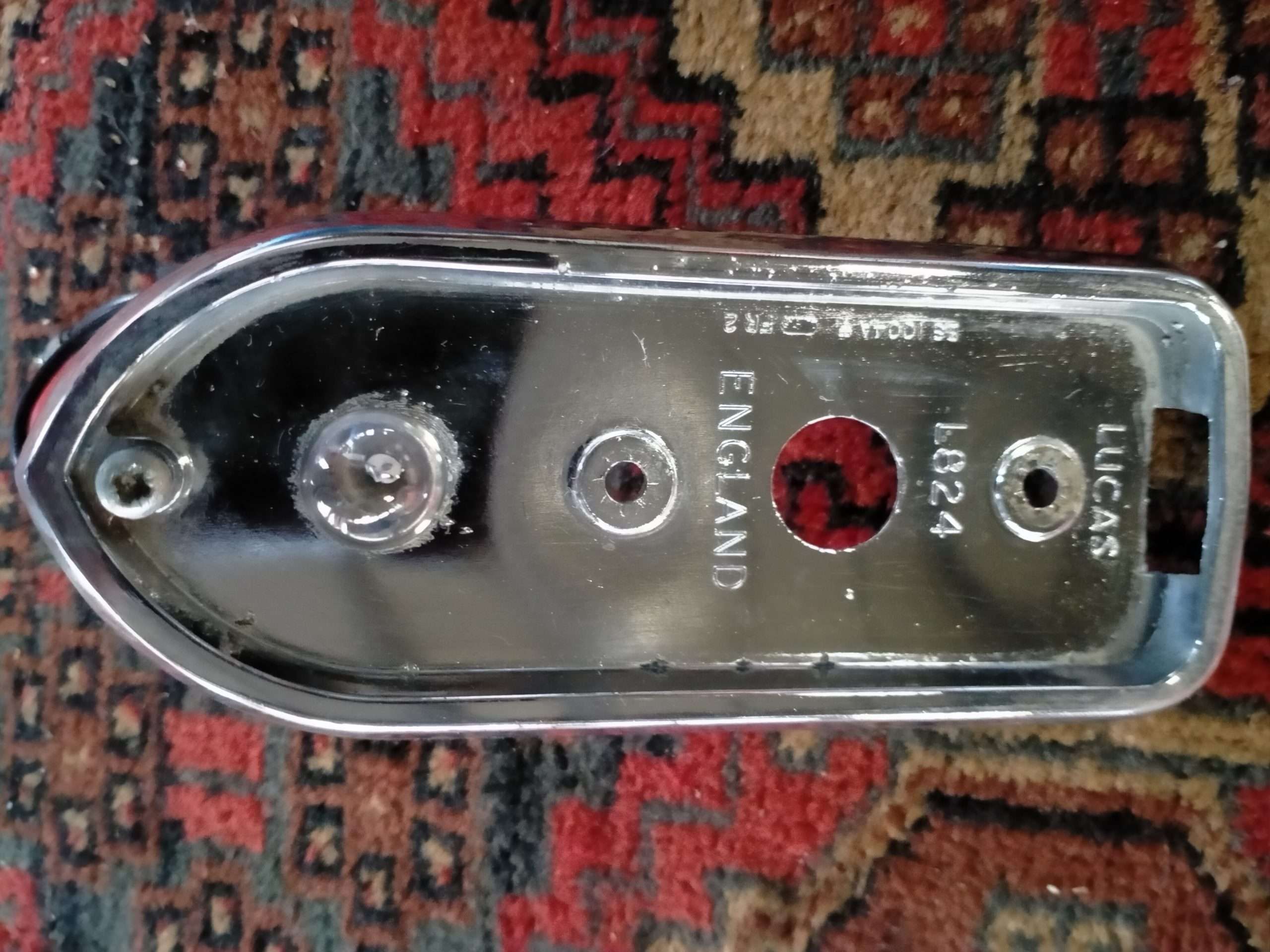 Crome is netjes heeft lichte putvorming, geen roest, nette gave lenzen, inclusief afdichtingsrubbers en lampjes.