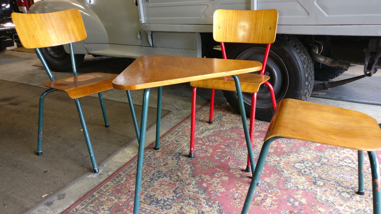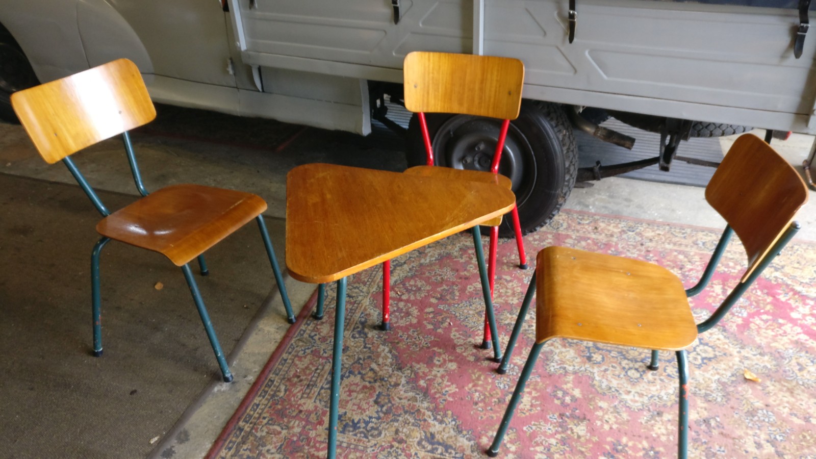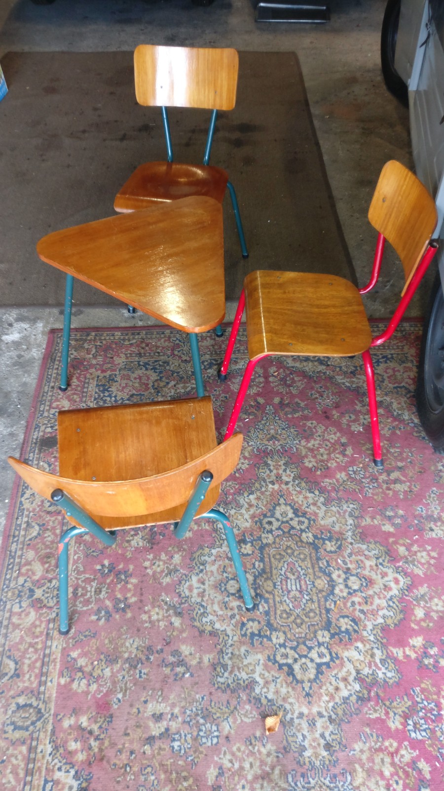 prijs voor gehele set; 3 stoelen en driehoekstafeltje
