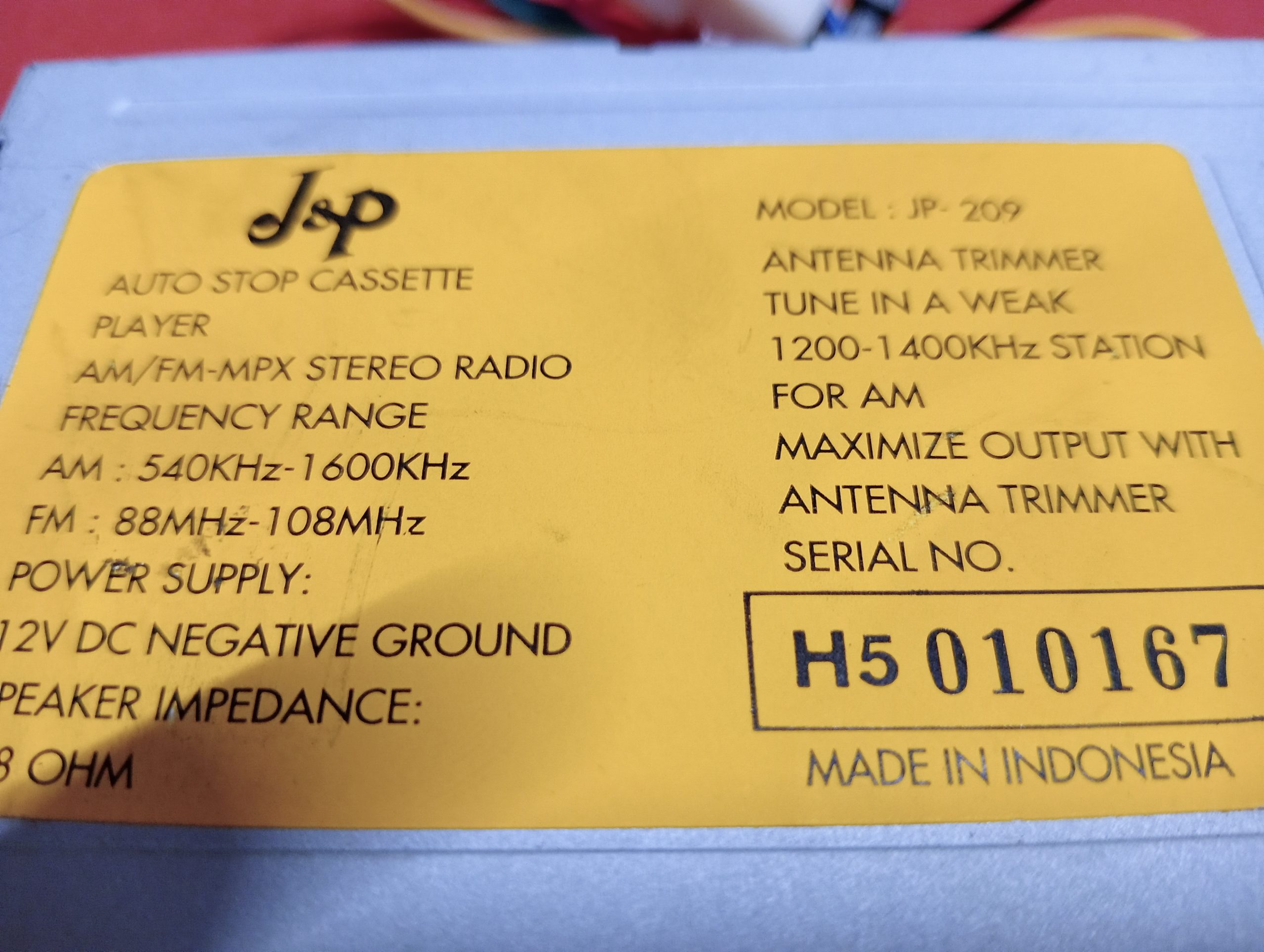J&P radio cassette JP209 youngtimer