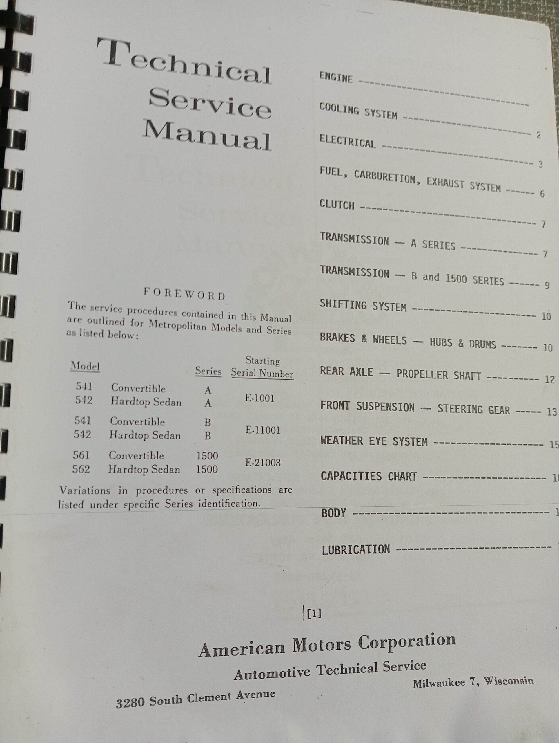 Nash Metropolitan technical service manual