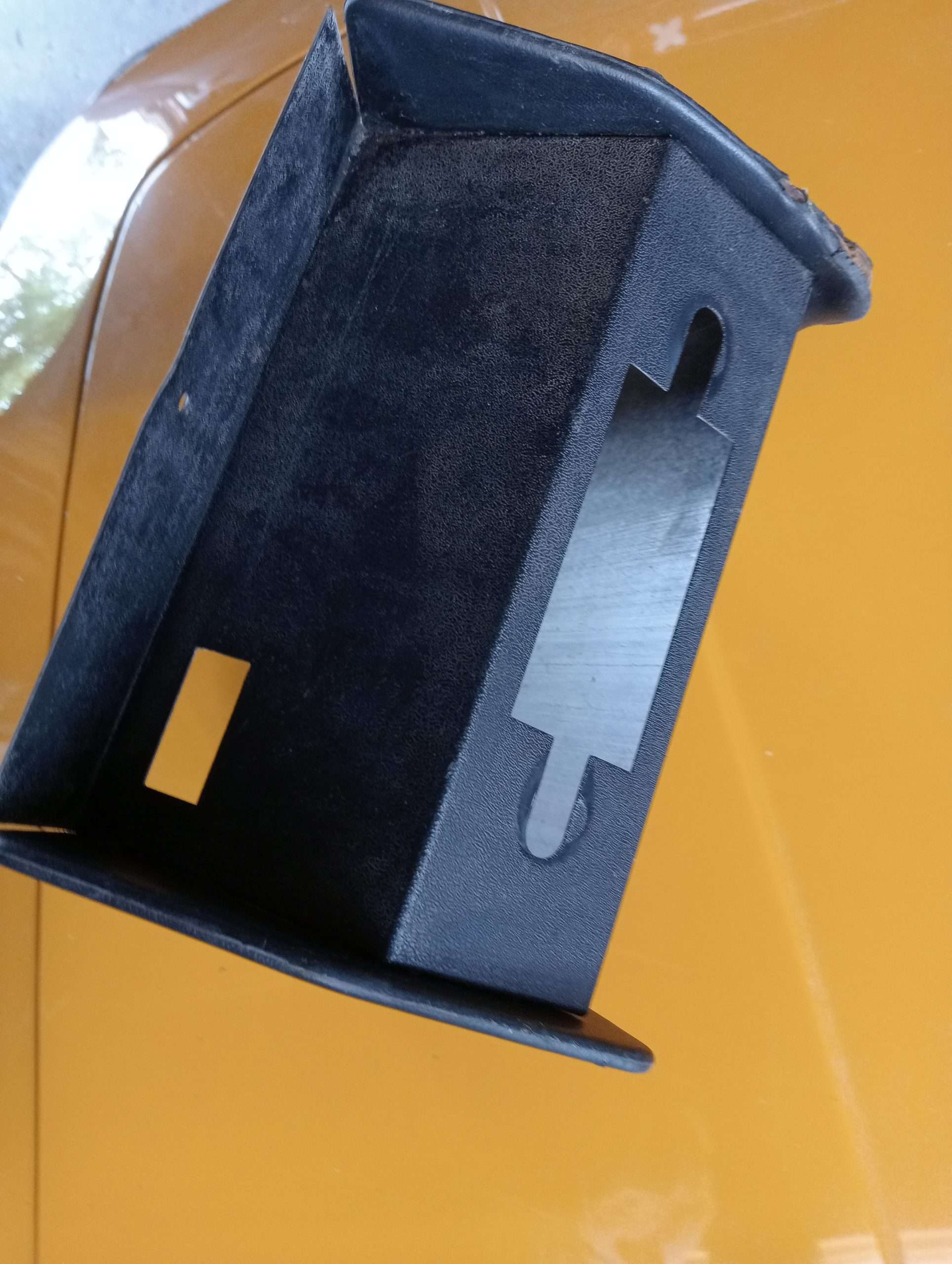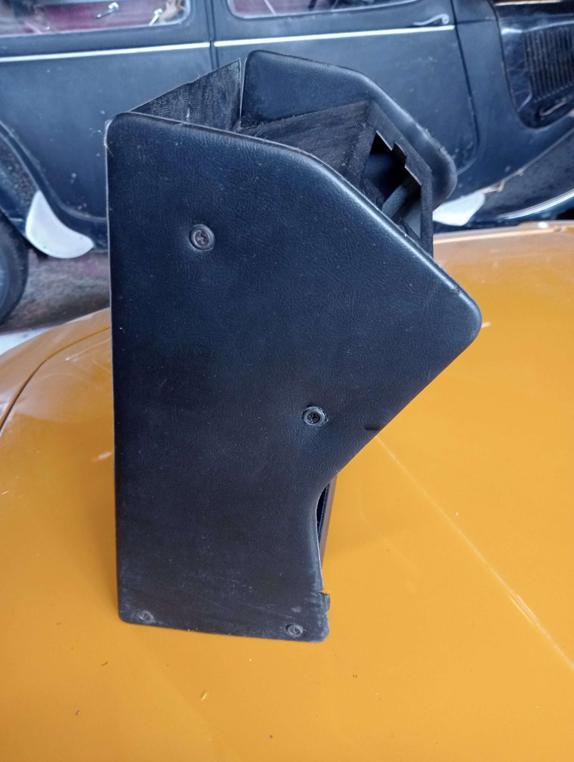 Zwart skai, op de randen is het skai beschadigd