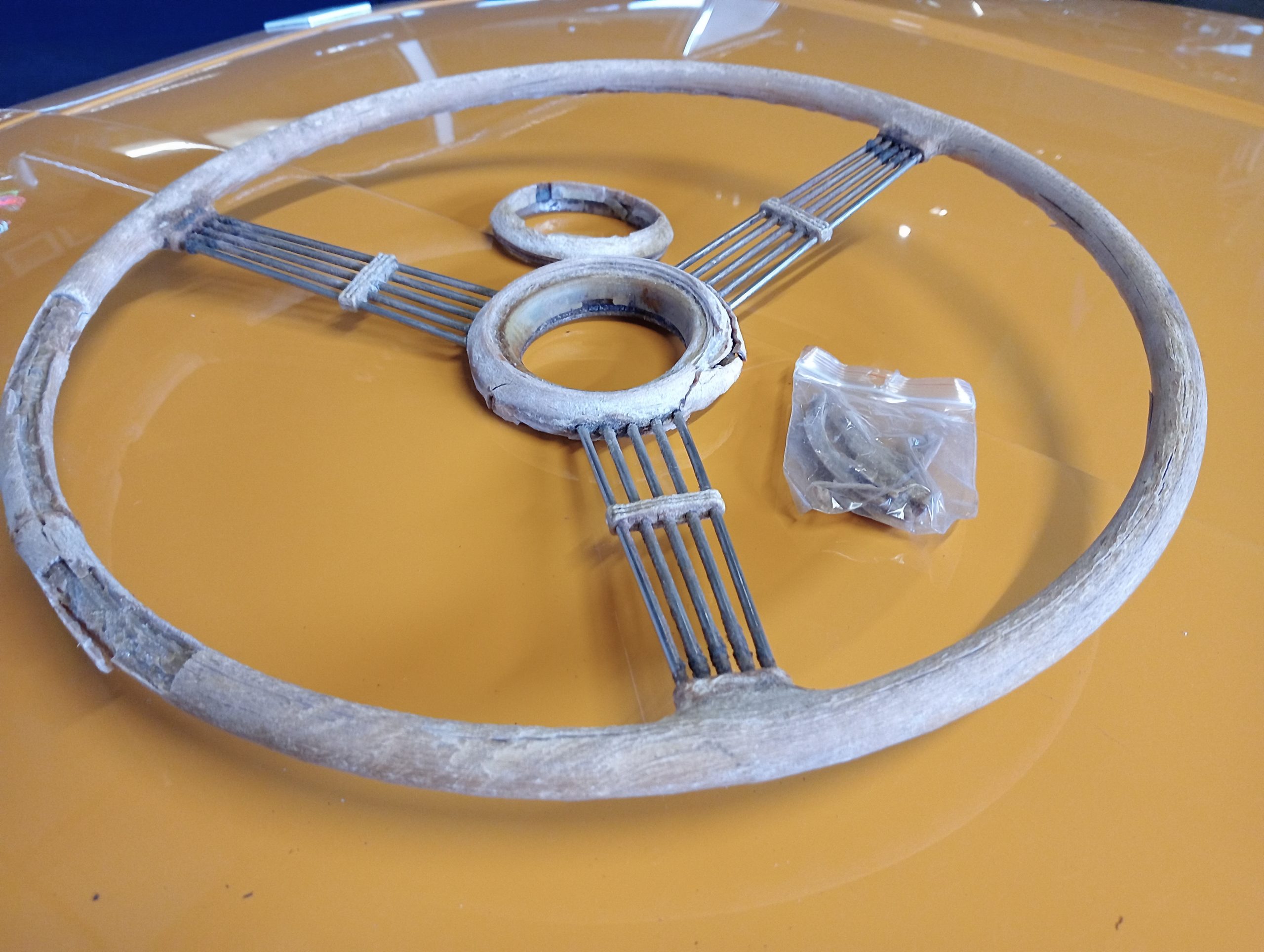 Quillery houten stuurwiel voor restauratie