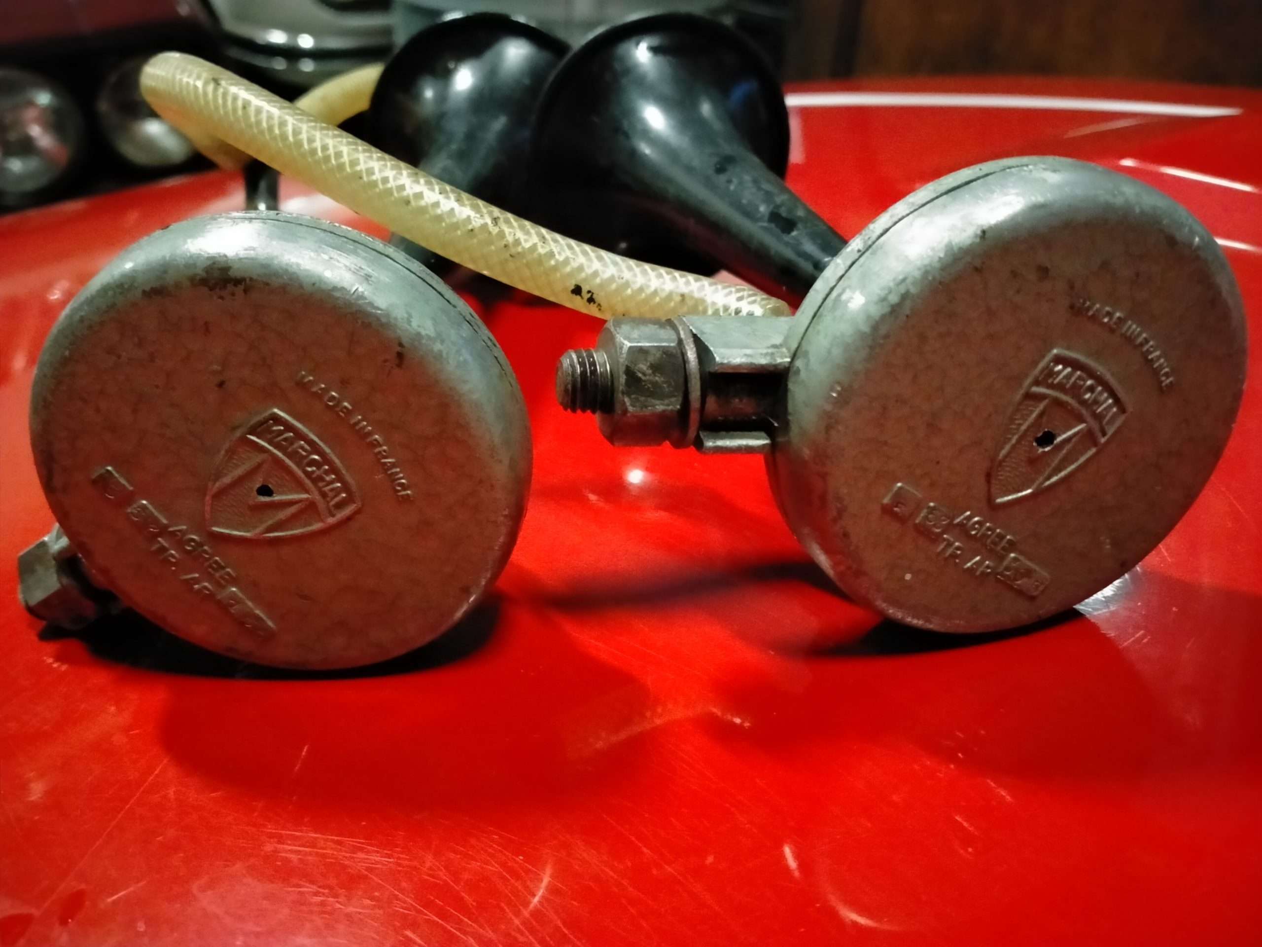 Set Marchal luchthoorns uit jaren 60 – zeldzaam!