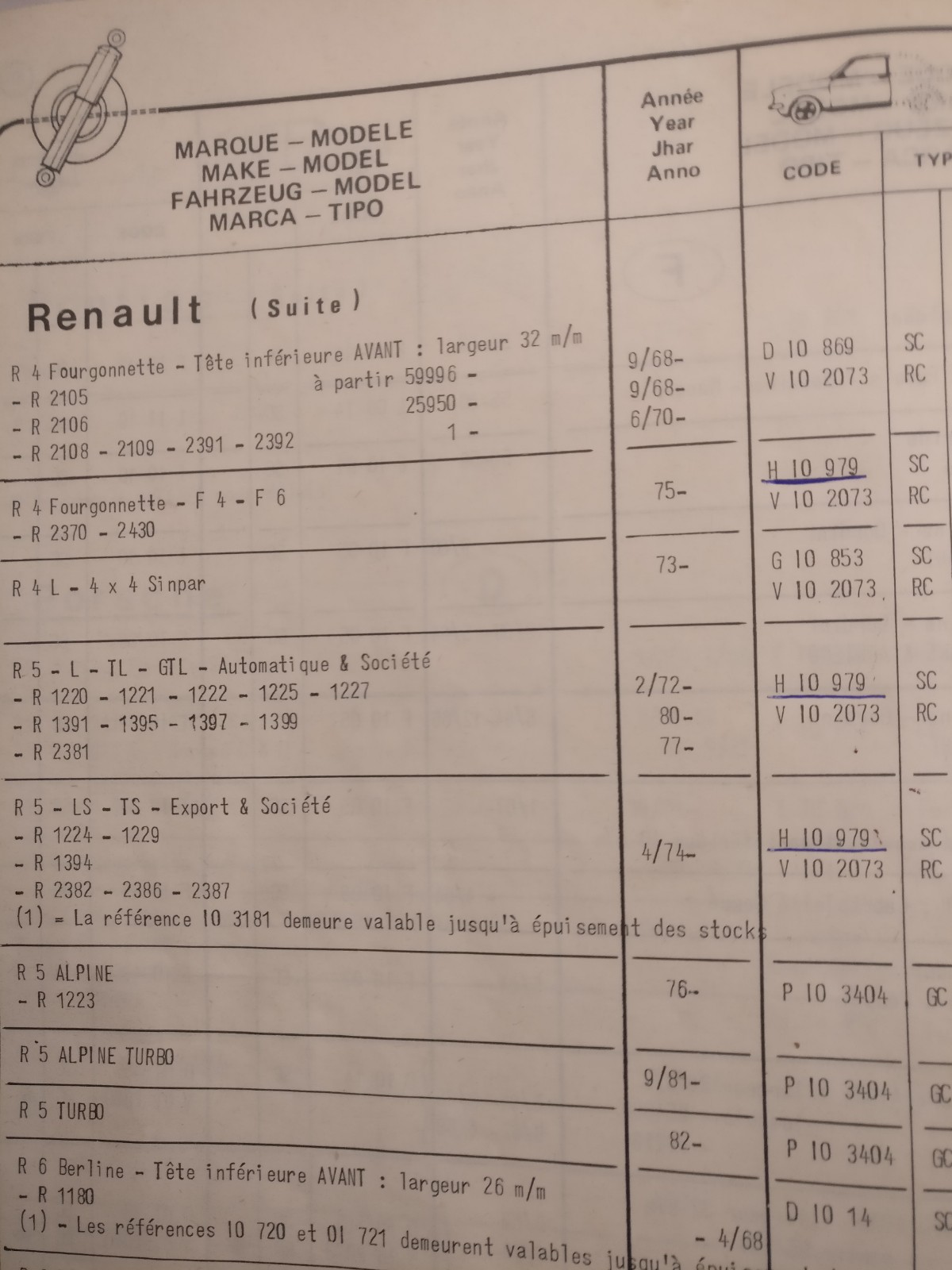 R4 Fourgonette F4 – F6 vanaf 1975 (zie foto)
