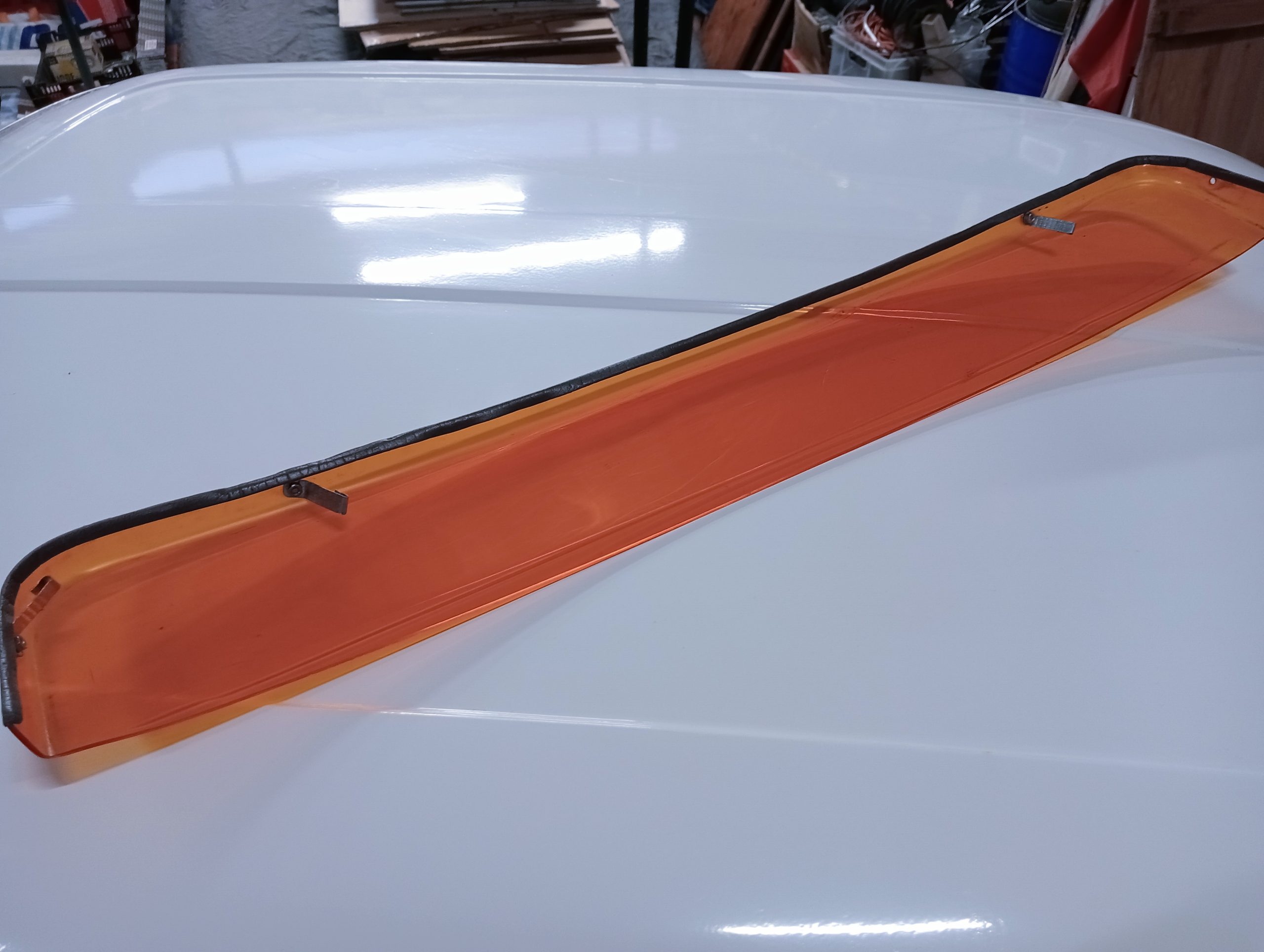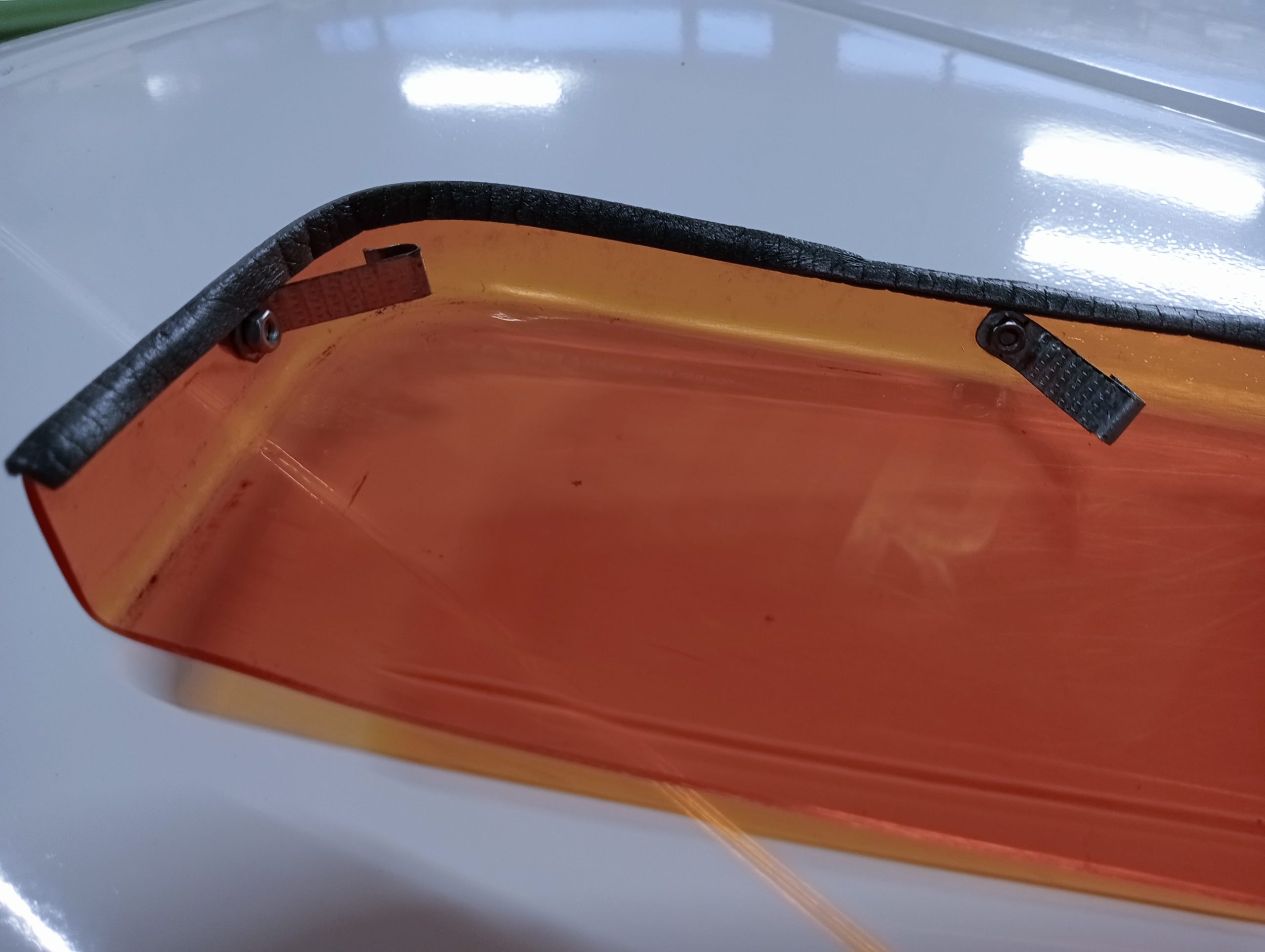 Inclusief 3 gemonteerde bevestigingklemmetjes (zie fotos), rand beplakt met rubber tochtstrip.